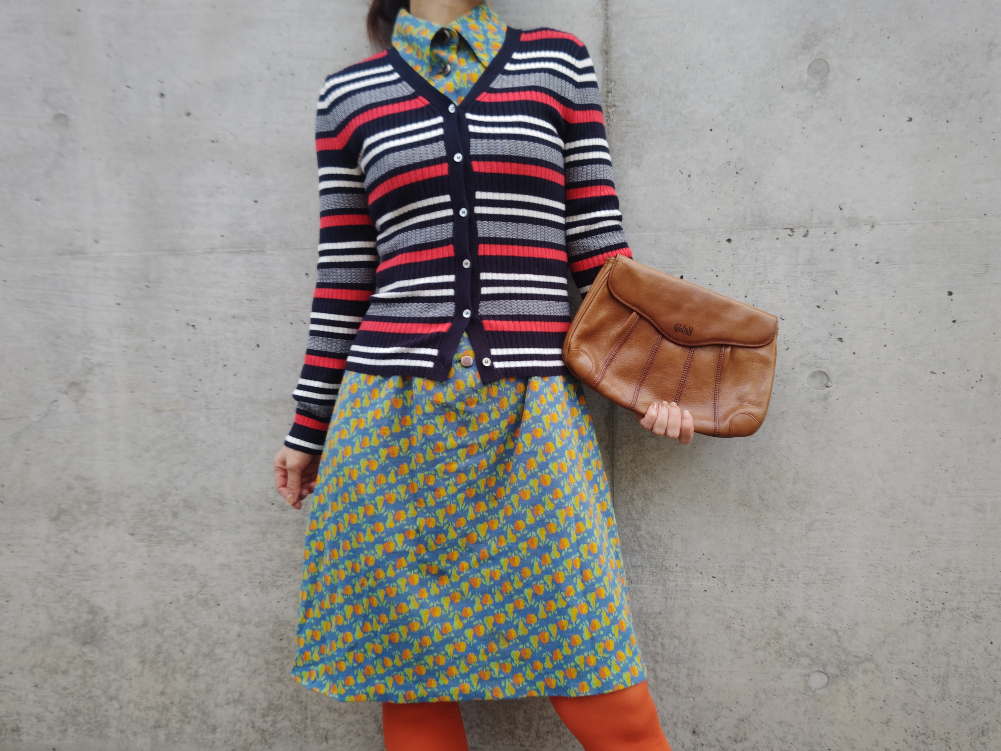 オレンジ・黄・緑洋ナシ柄♪レトロワンピ