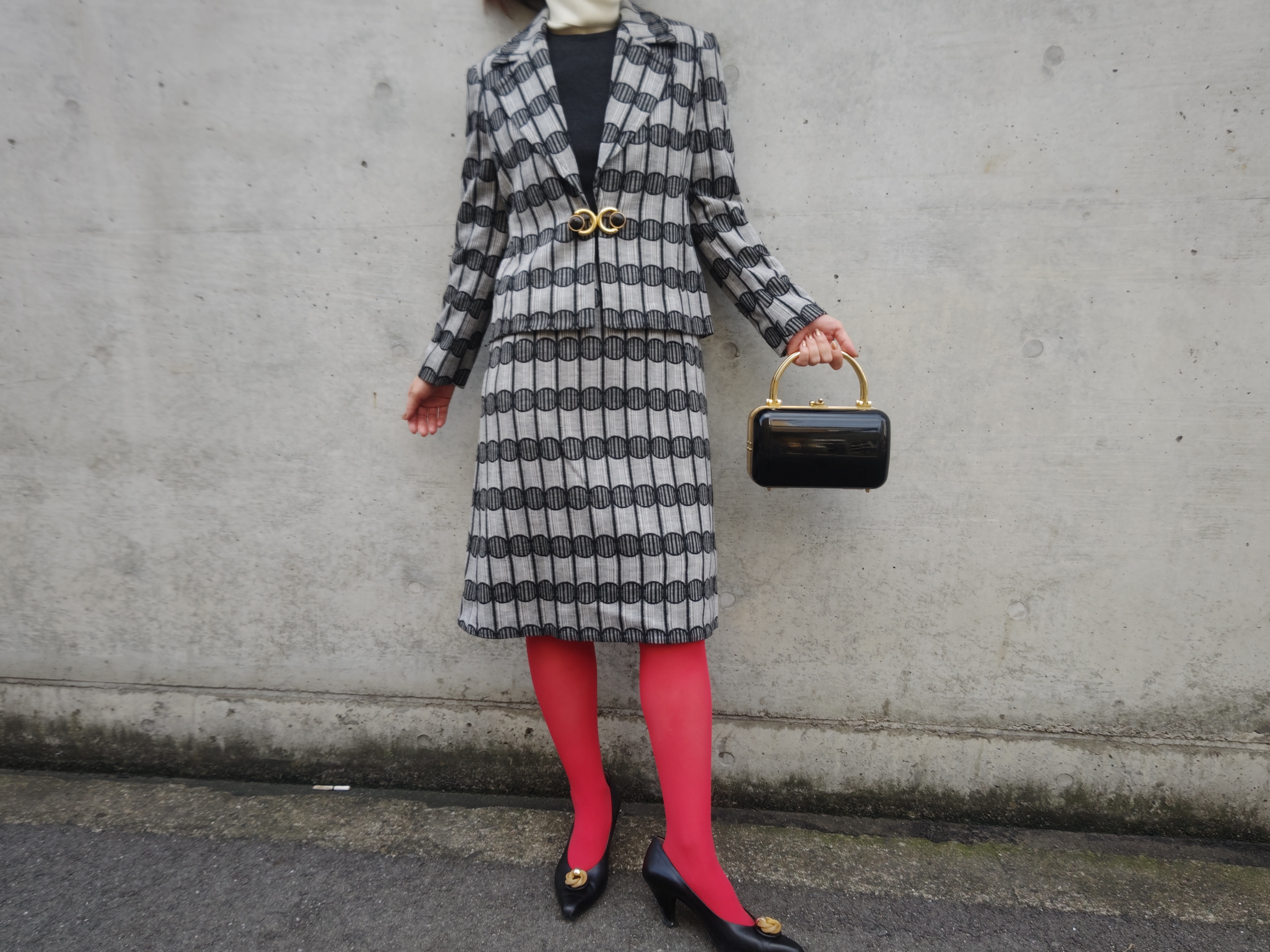 赤黒白ヘリンボーンチェック柄♪レトロMODEスカート
