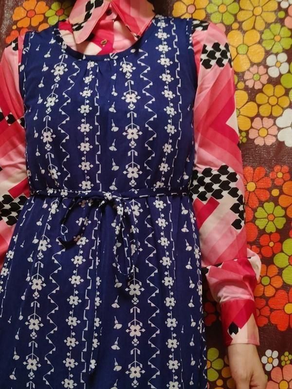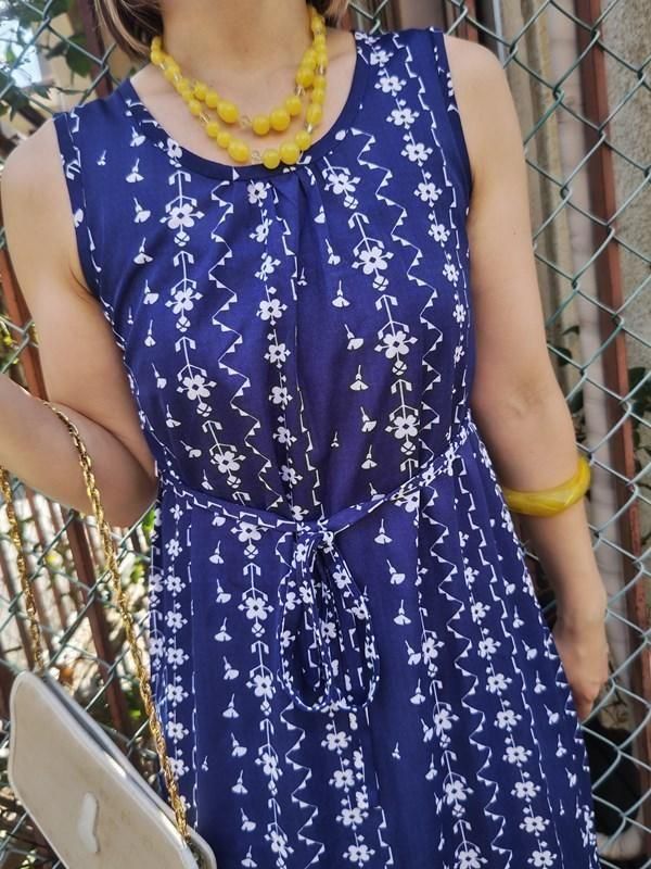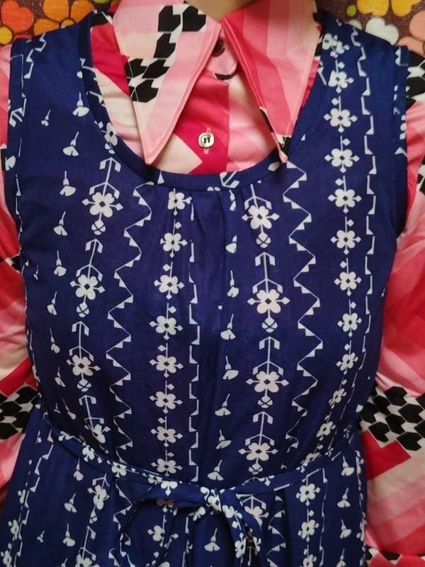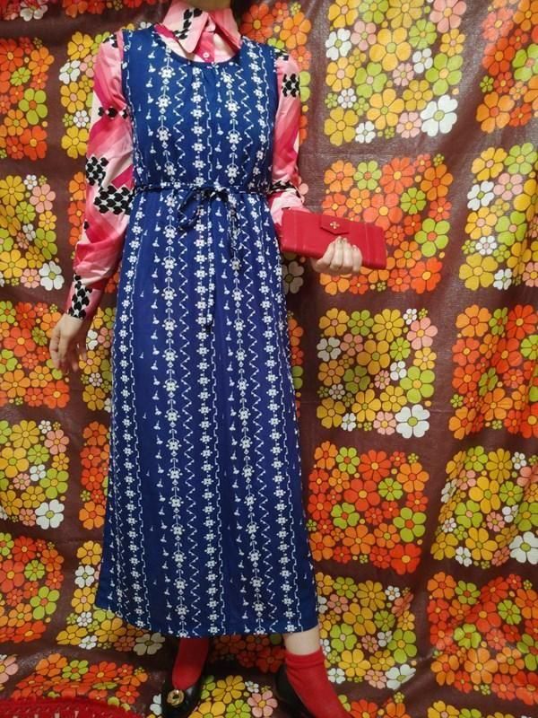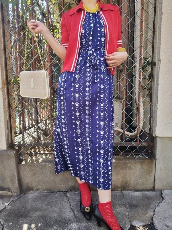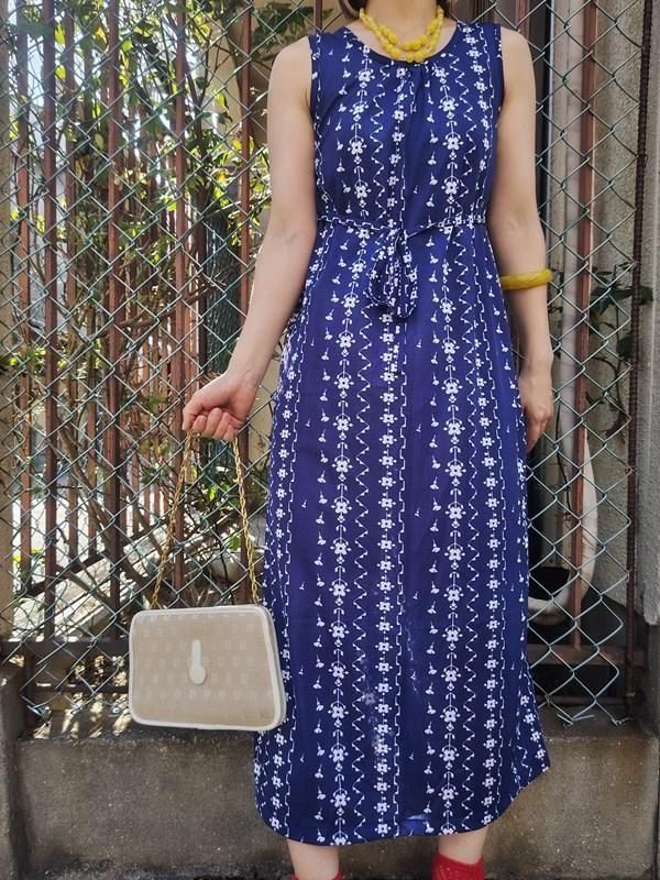 青x白お花柄がとってもキュートなヴィンテージワンピース
