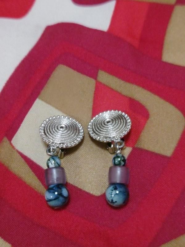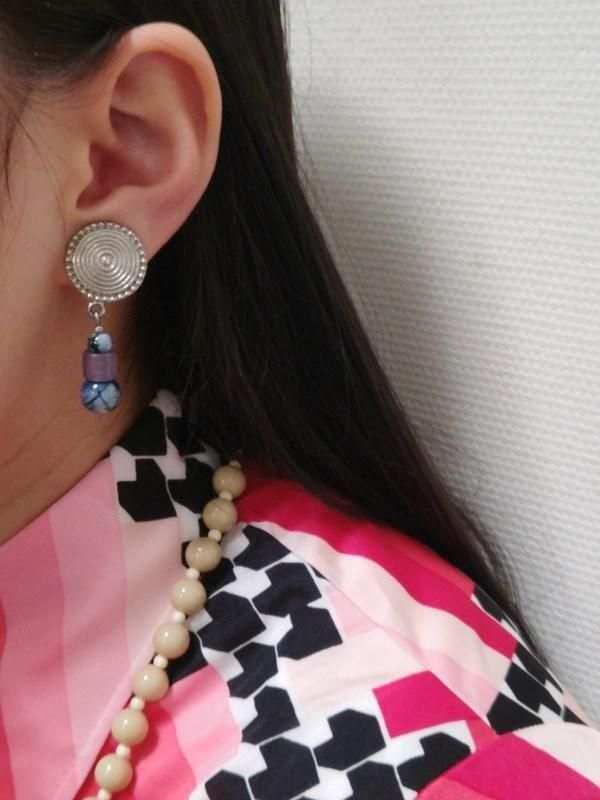ブルー・パープルゆらりビーズ☆シルバーイヤリング