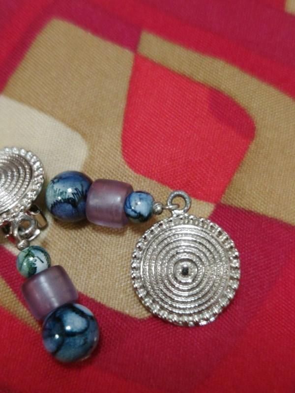 深みあるブルー・パープル系ビーズにシルバーの渦巻きサークル
