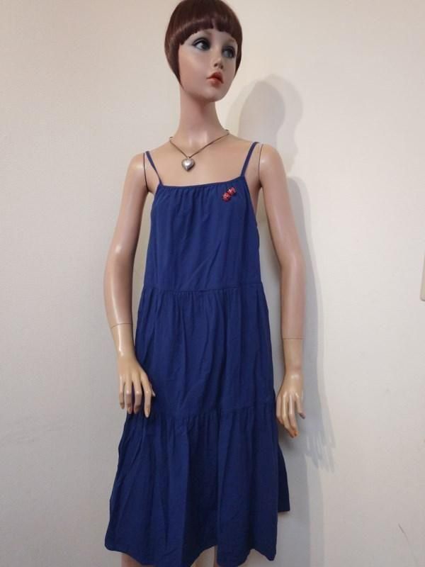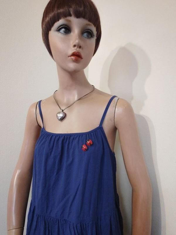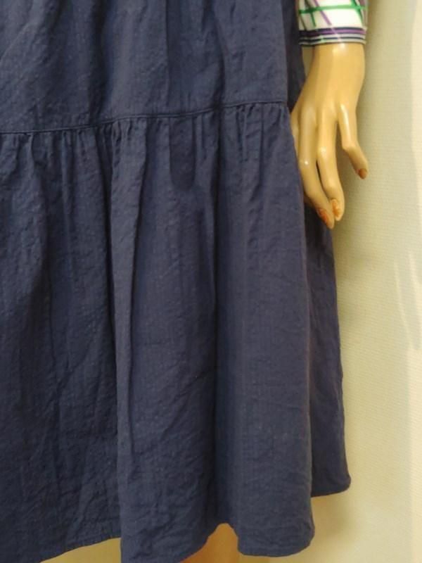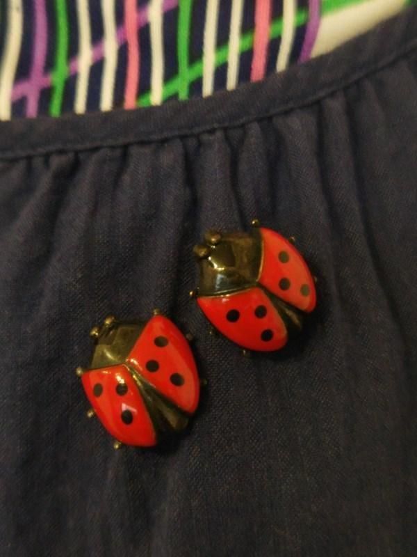 ネイビーのふんわりコットンギャザー生地にてんとう虫が