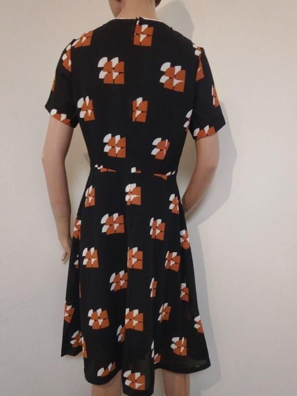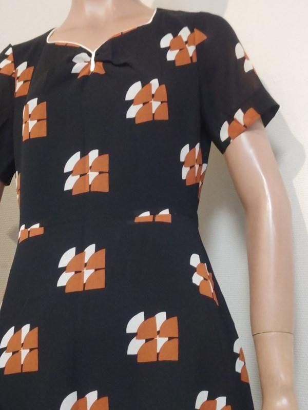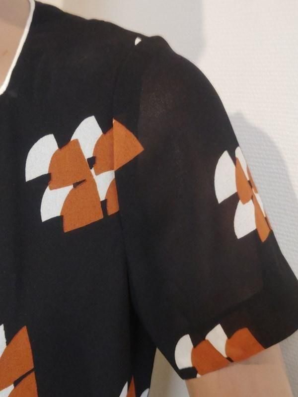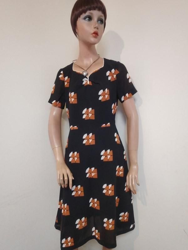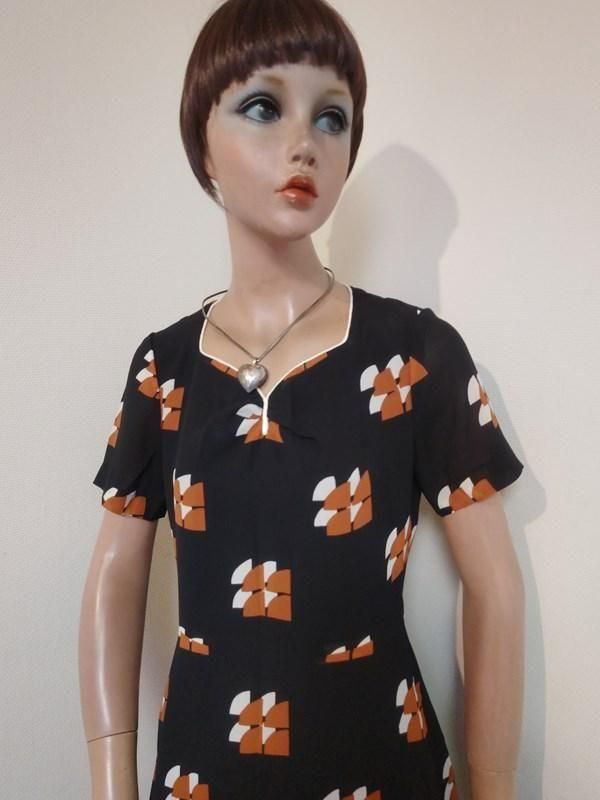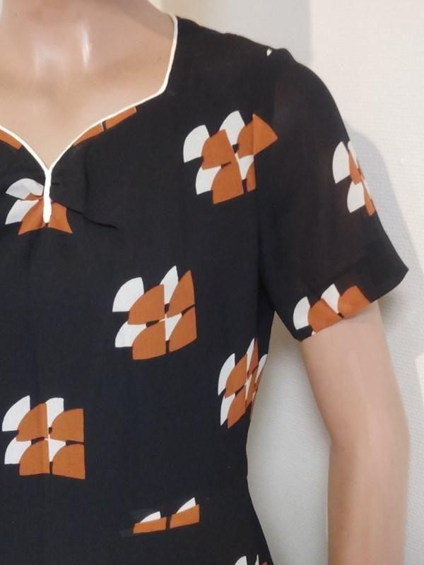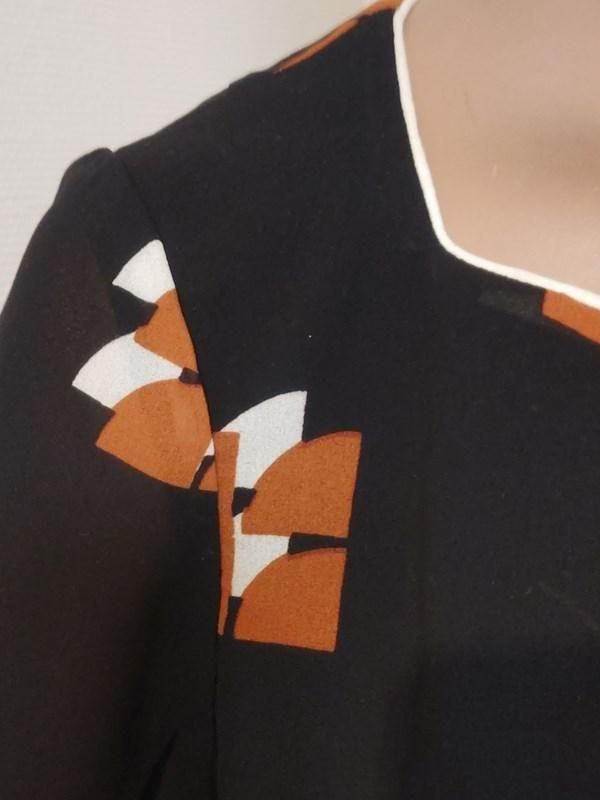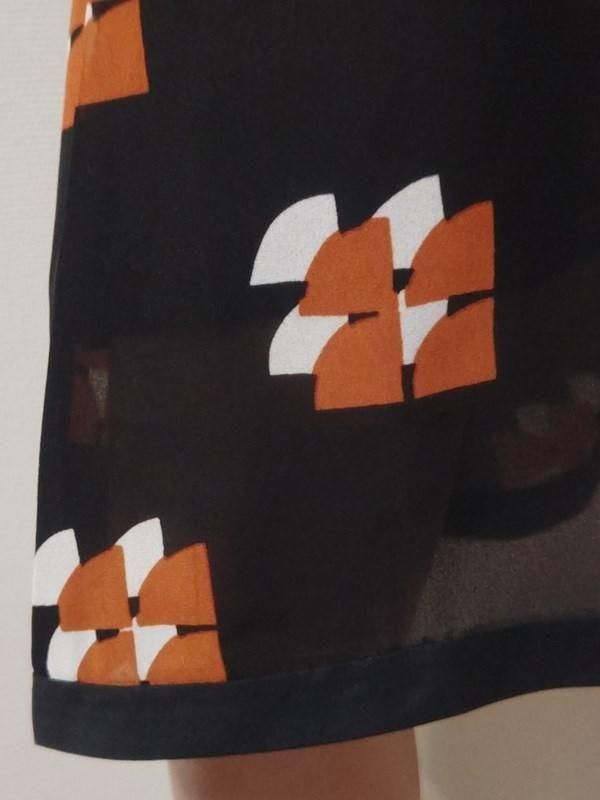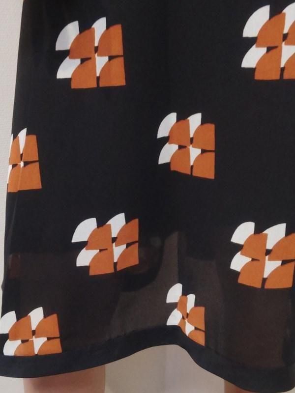 黒地に茶・白の扇柄がモダンでお洒落なヴィンテージ