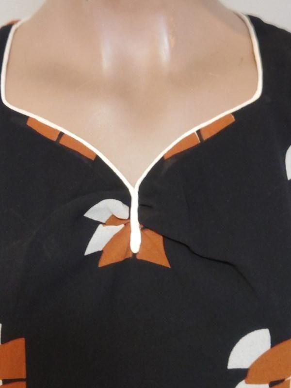 襟ぐり白パイピング&お洒落カット、胸元ギャザーも