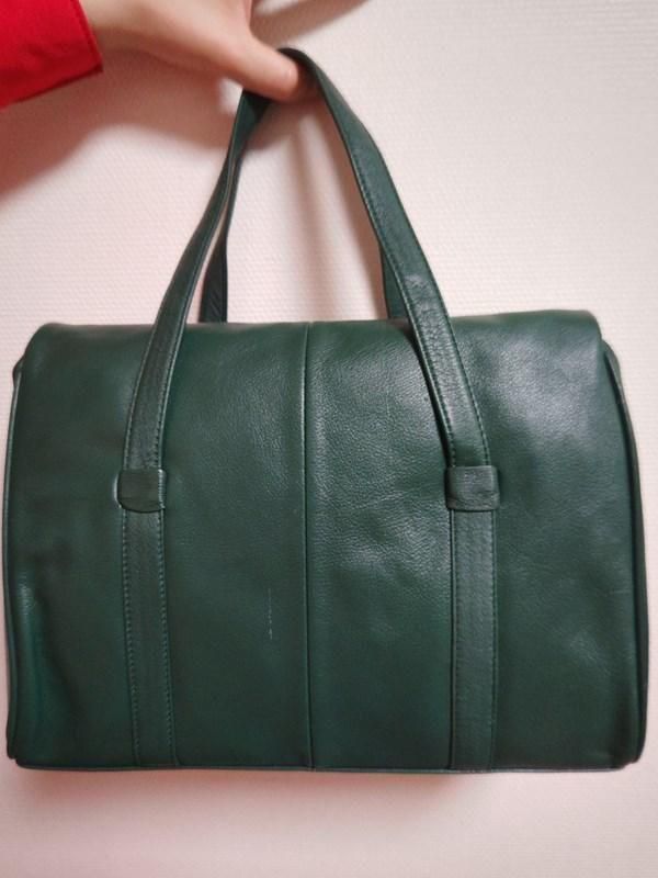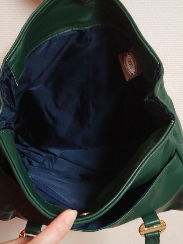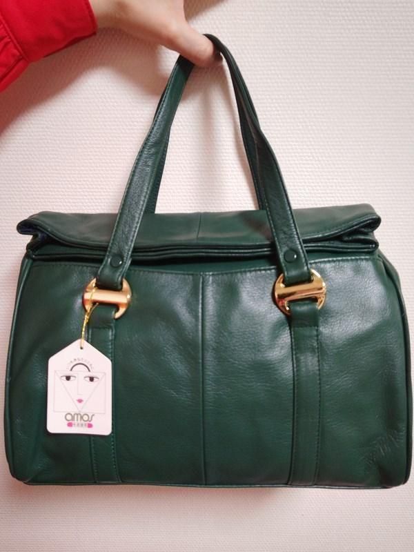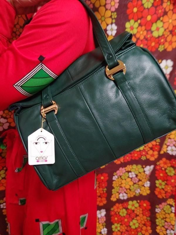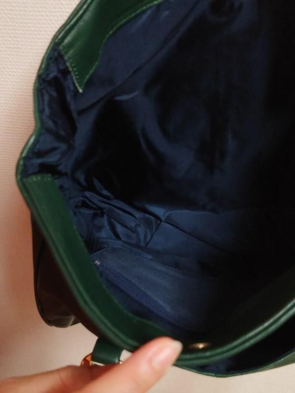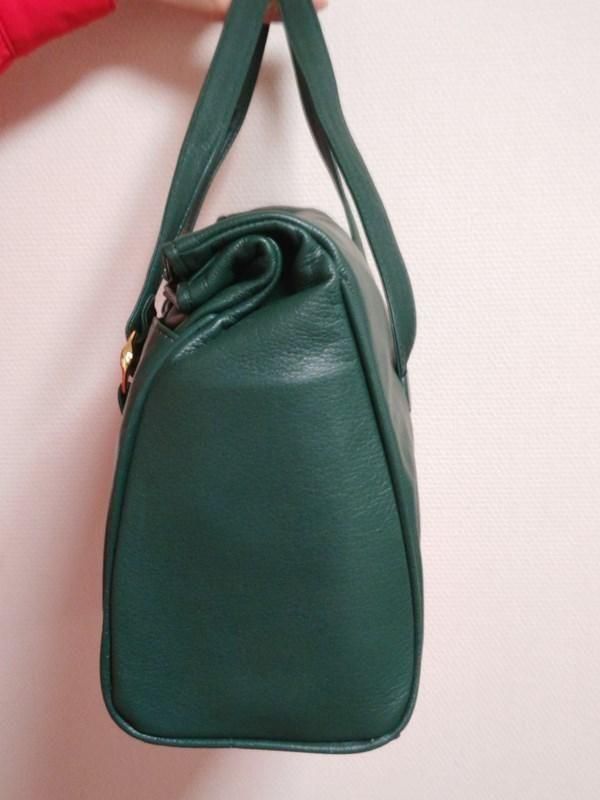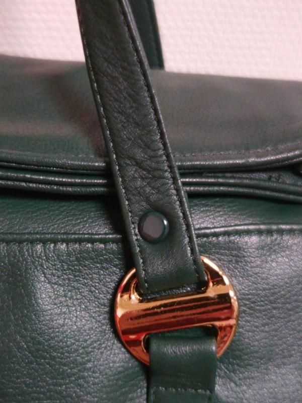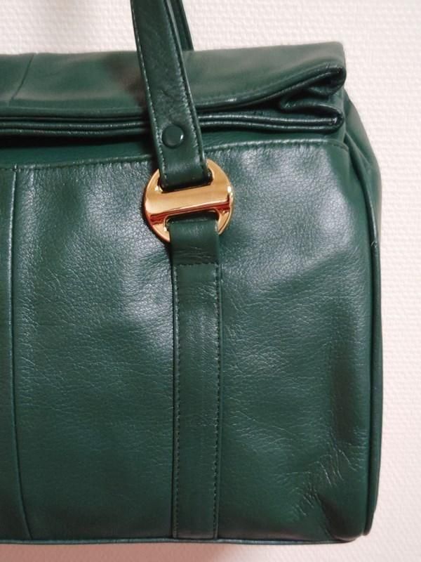 深緑の牛皮にすごく味があり、ヴィンテージならではの