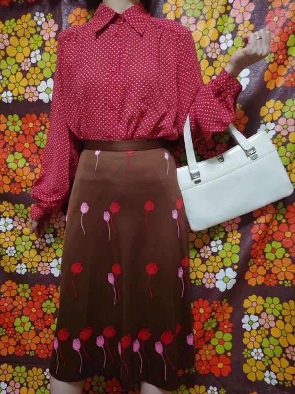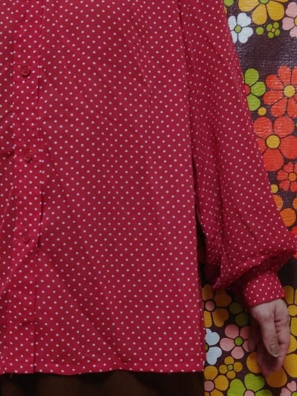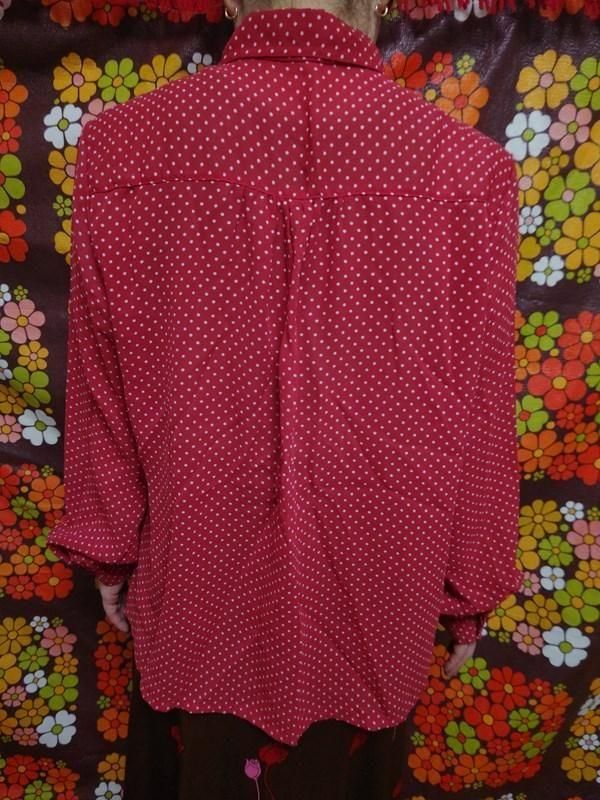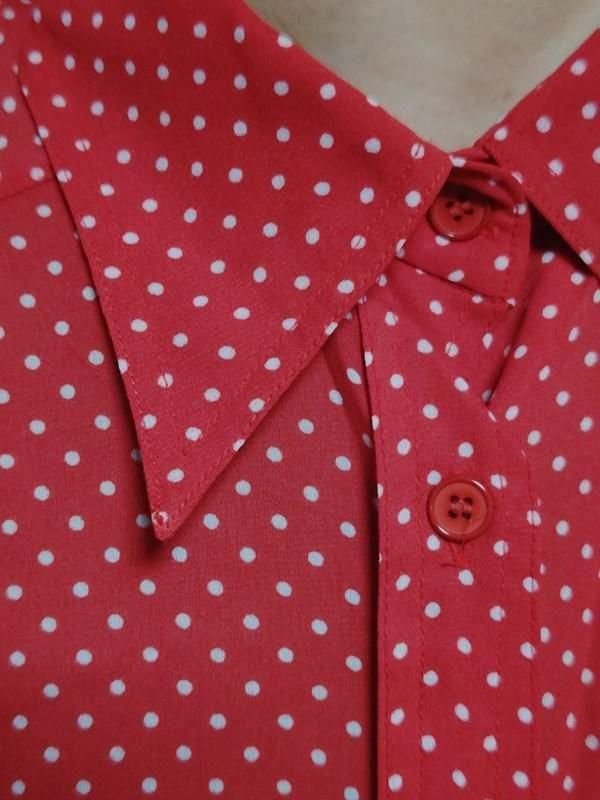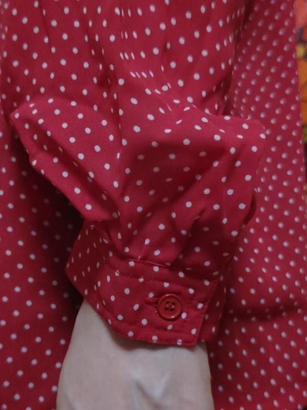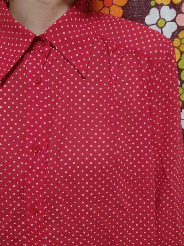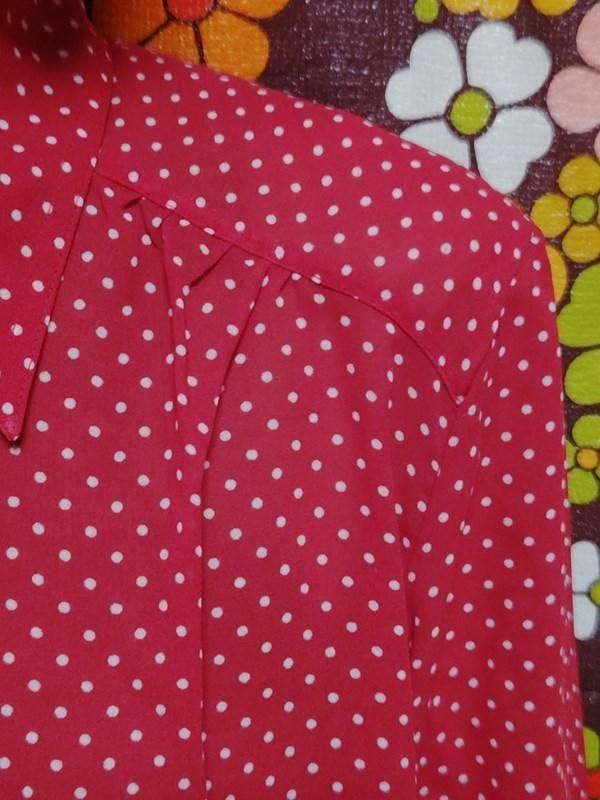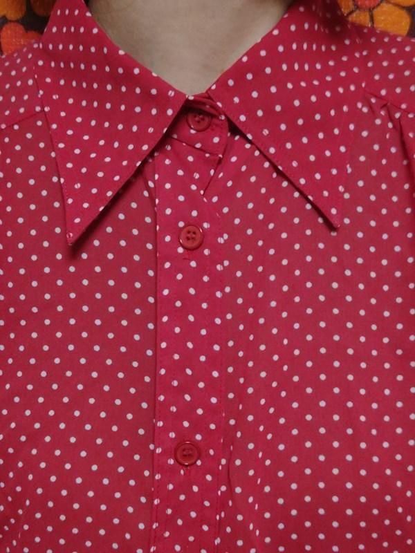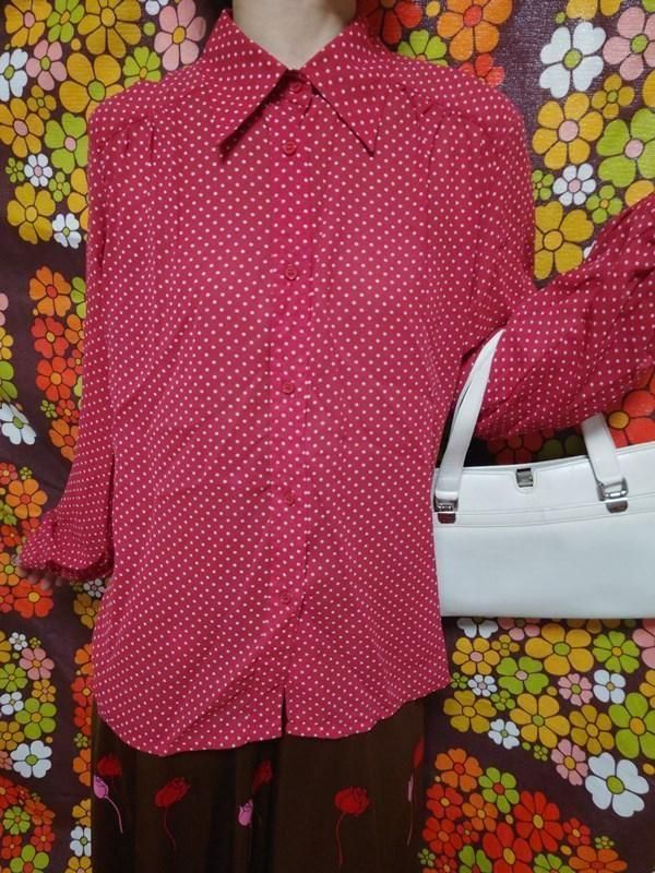 赤x白ドット柄が素敵なヴィンテージブラウスです。