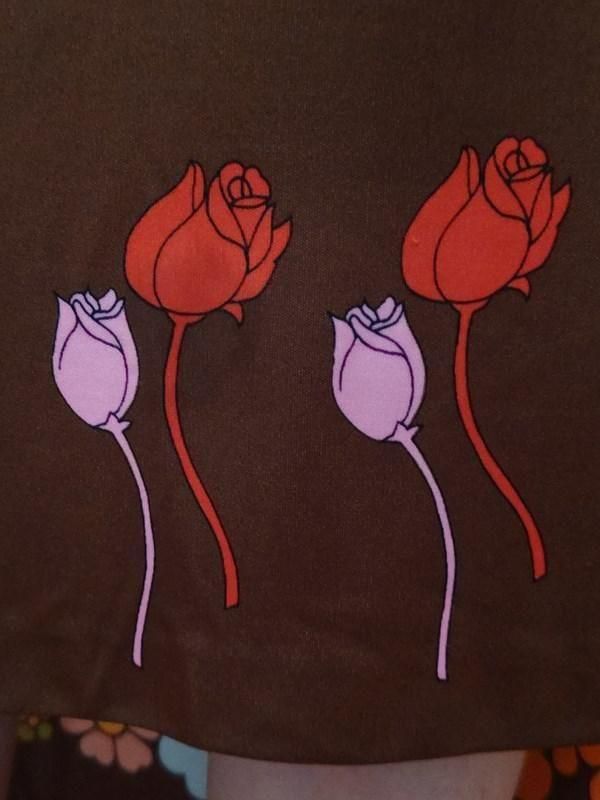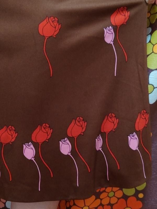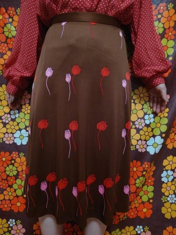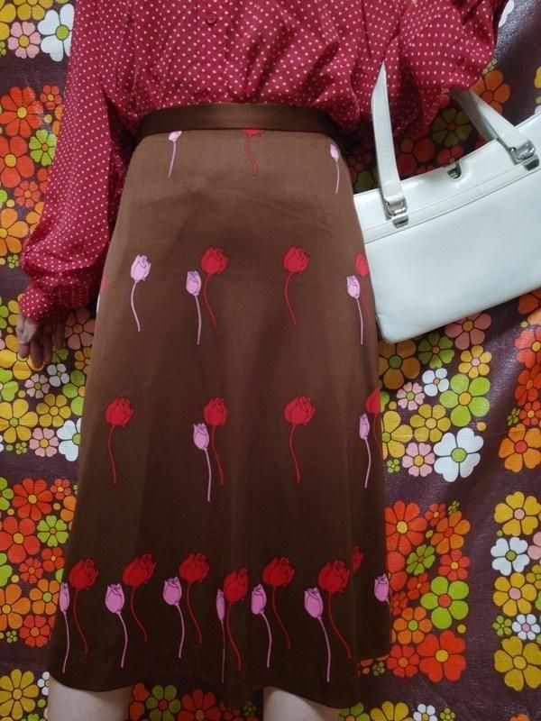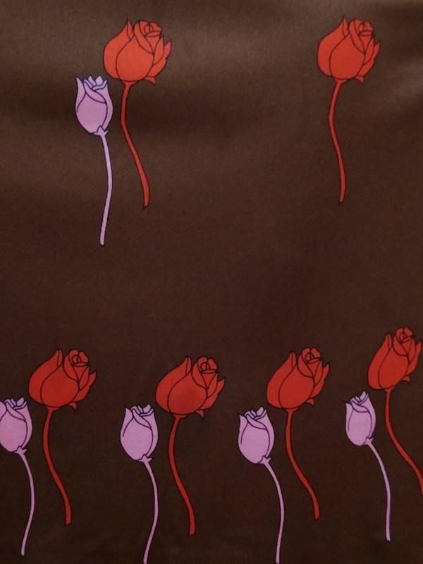 茶ベースに赤・ピンクのチューリップ柄がとっても素敵な