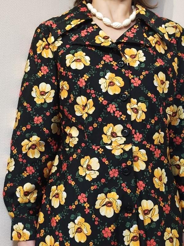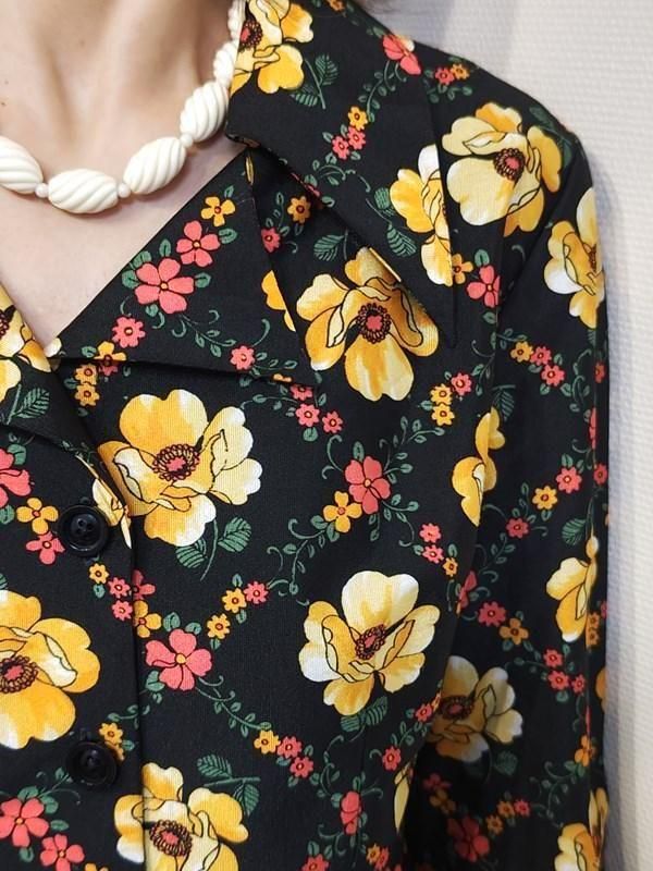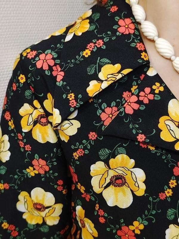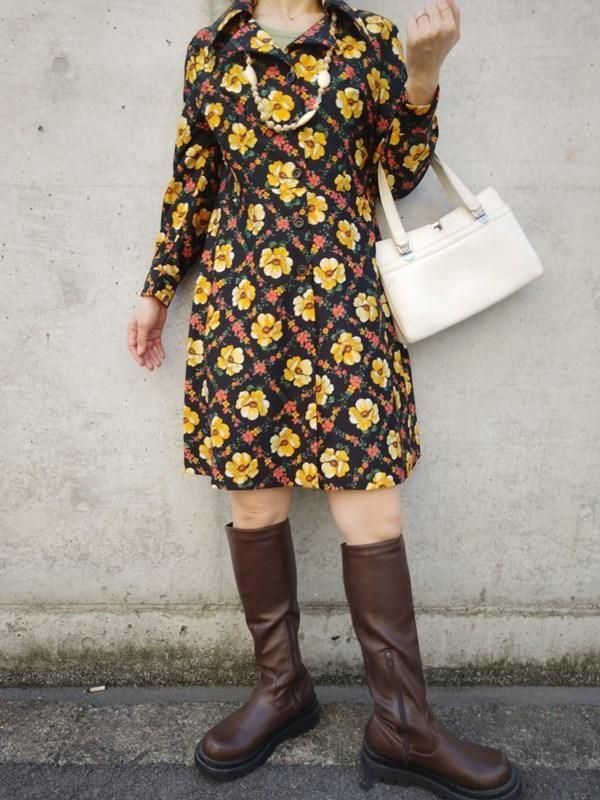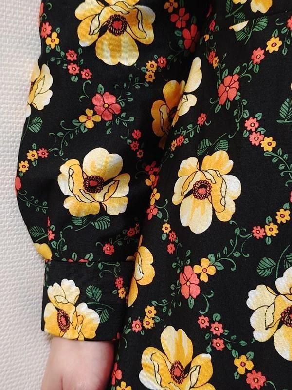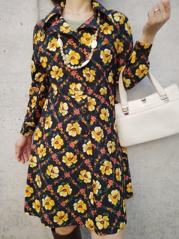 黄・オレンジ・緑お花柄♪レトロワンピ