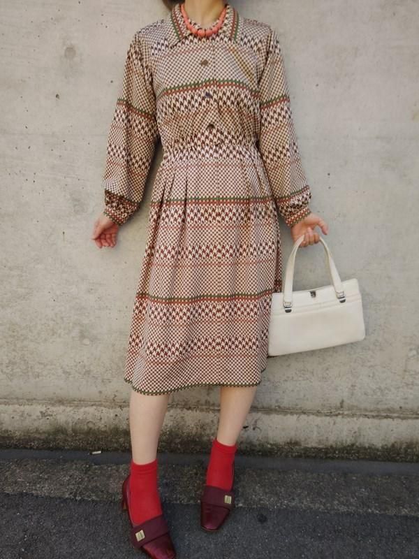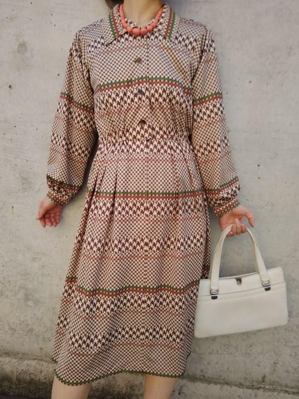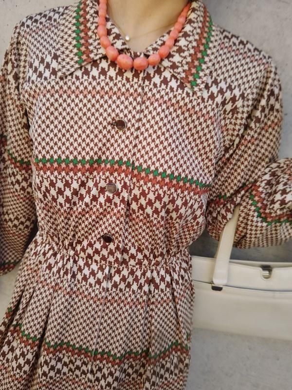 千鳥格子柄がとっても素敵なヴィンテージワンピースです。