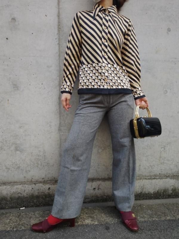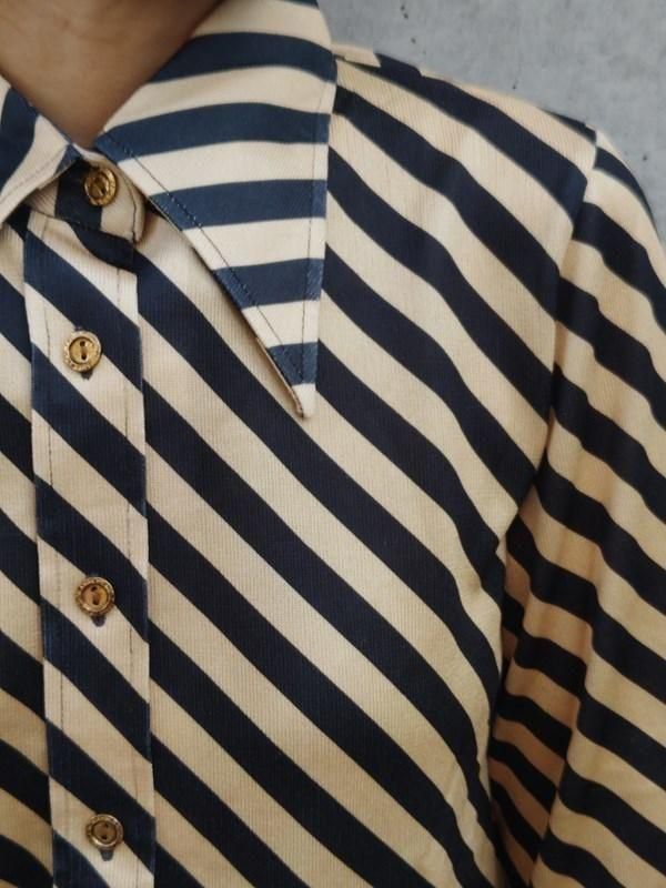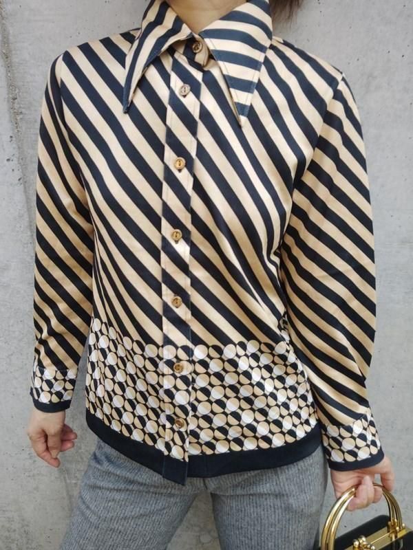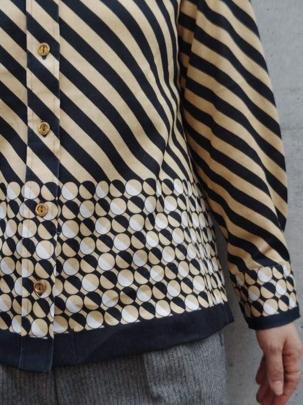 斜めボーダーxドット柄がとってもお洒落なヴィンテージシャツ