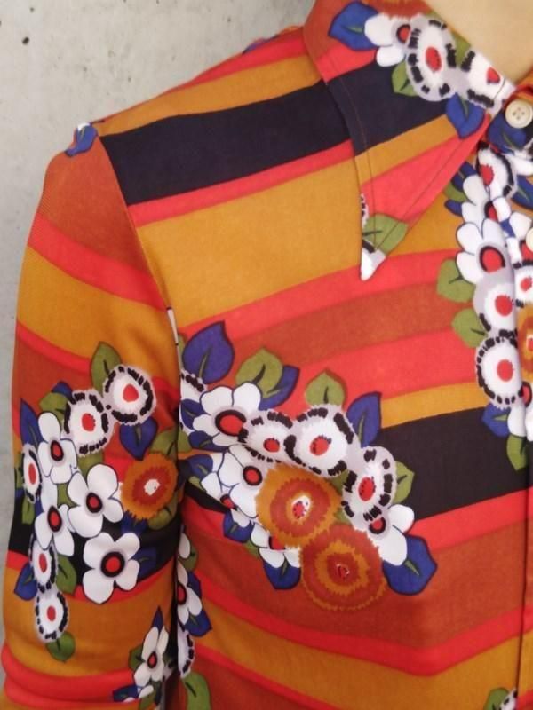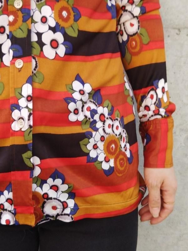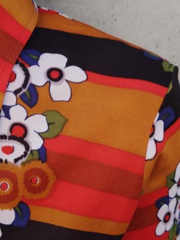 発色いいカラーリングのお花xボーダー柄がレトロで