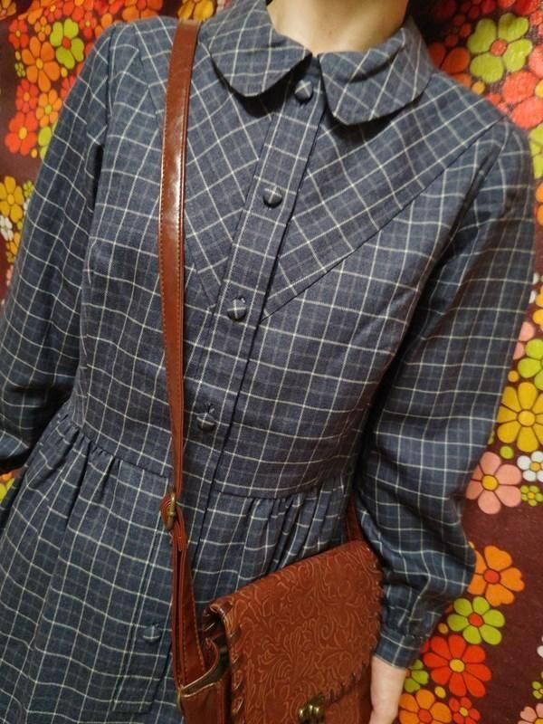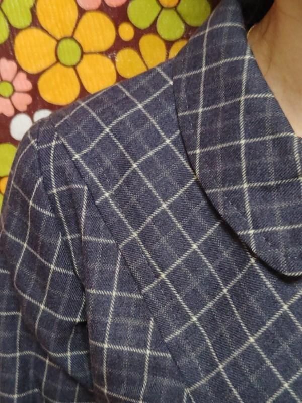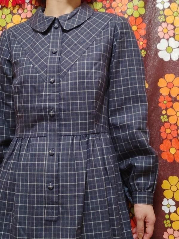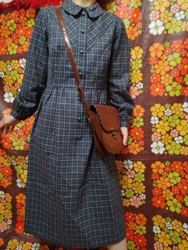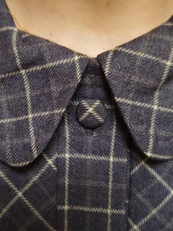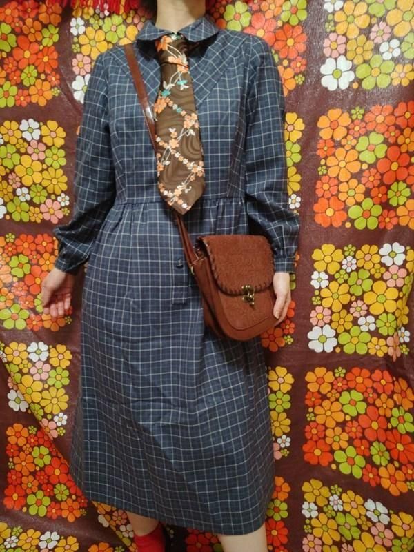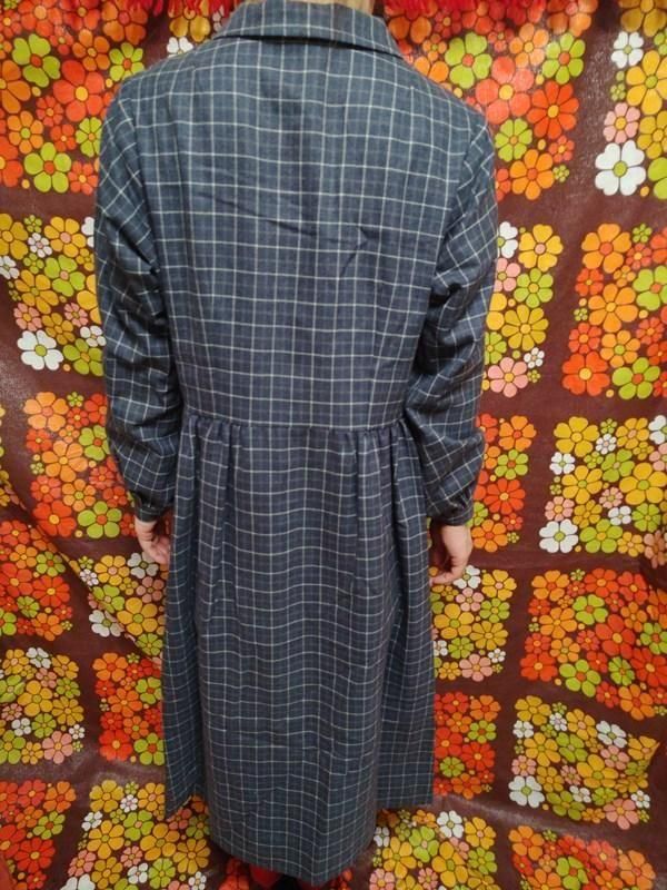 お仕立て品*グレーx白チェック柄♪上質レトロワンピ