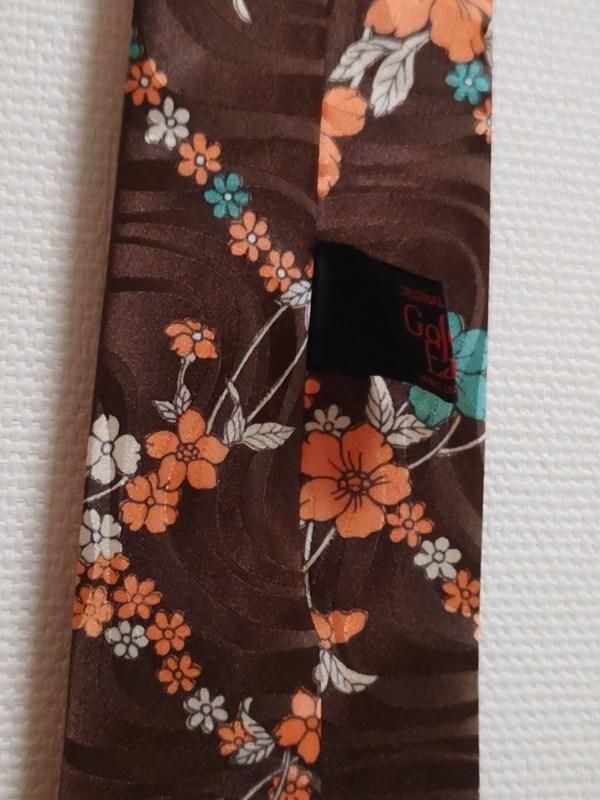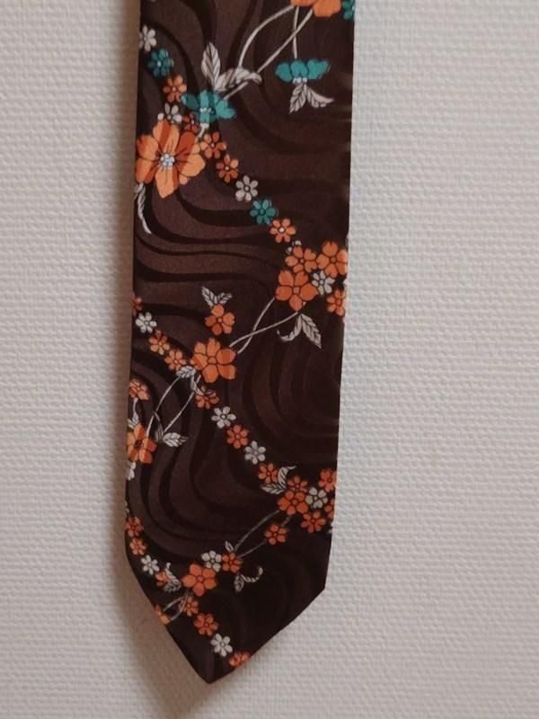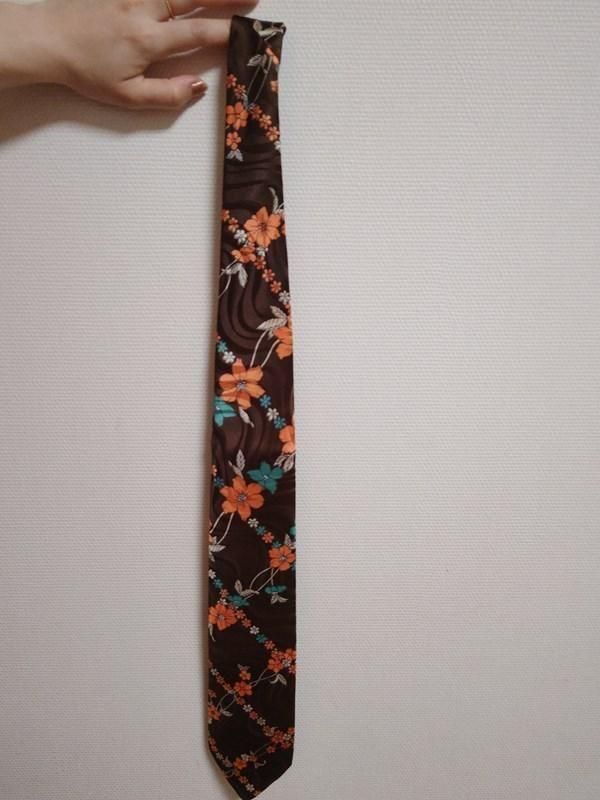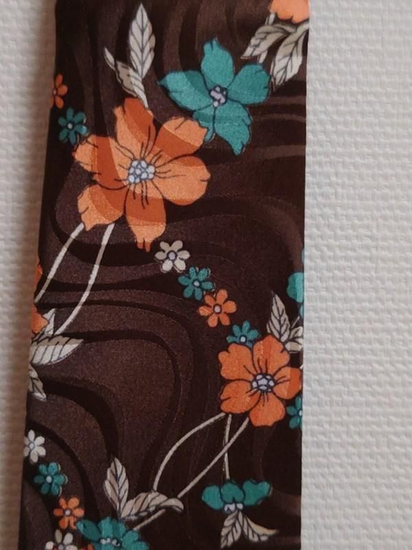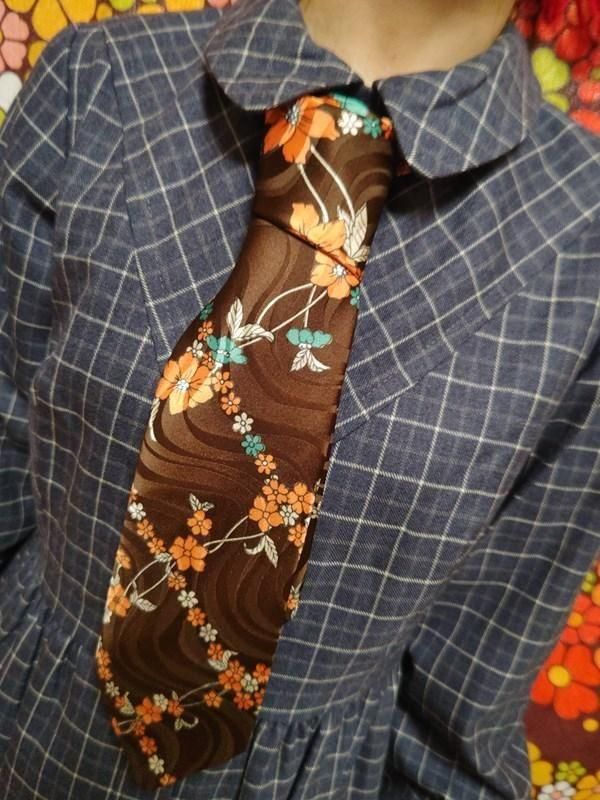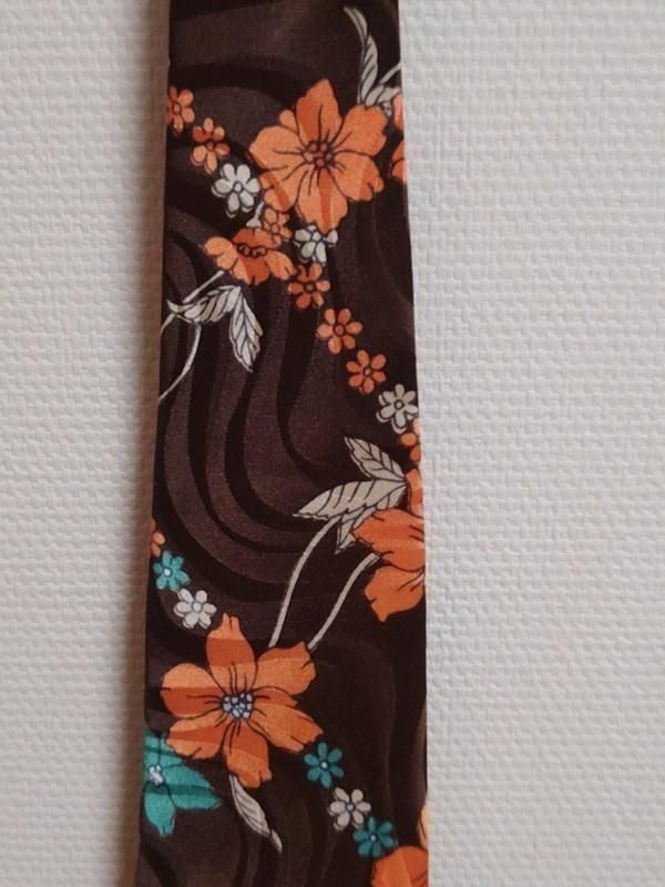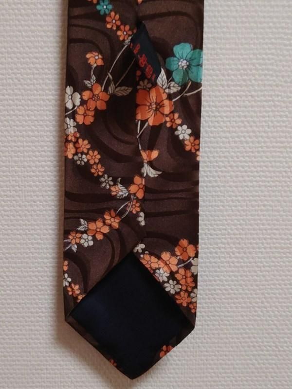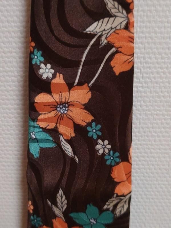ダークブラウンベースにオレンジ・グリーンの花柄がとっても