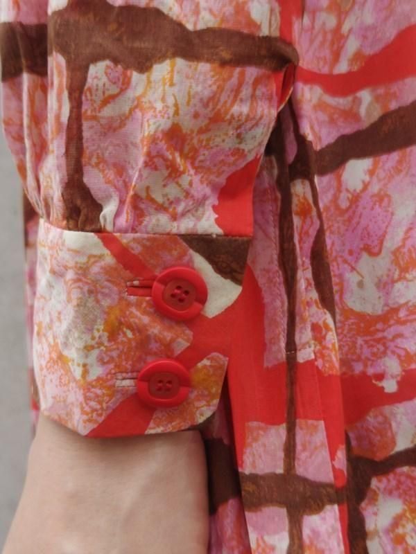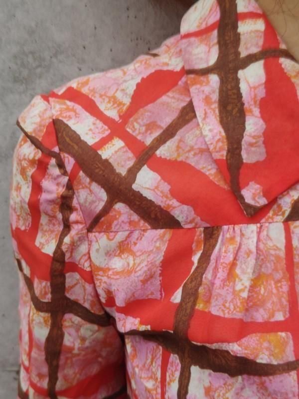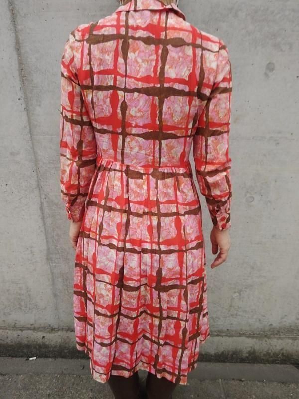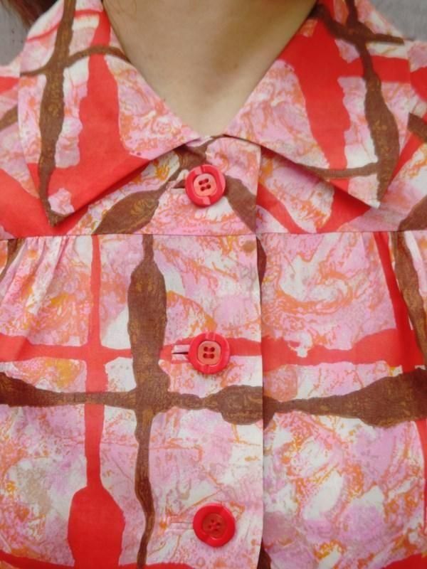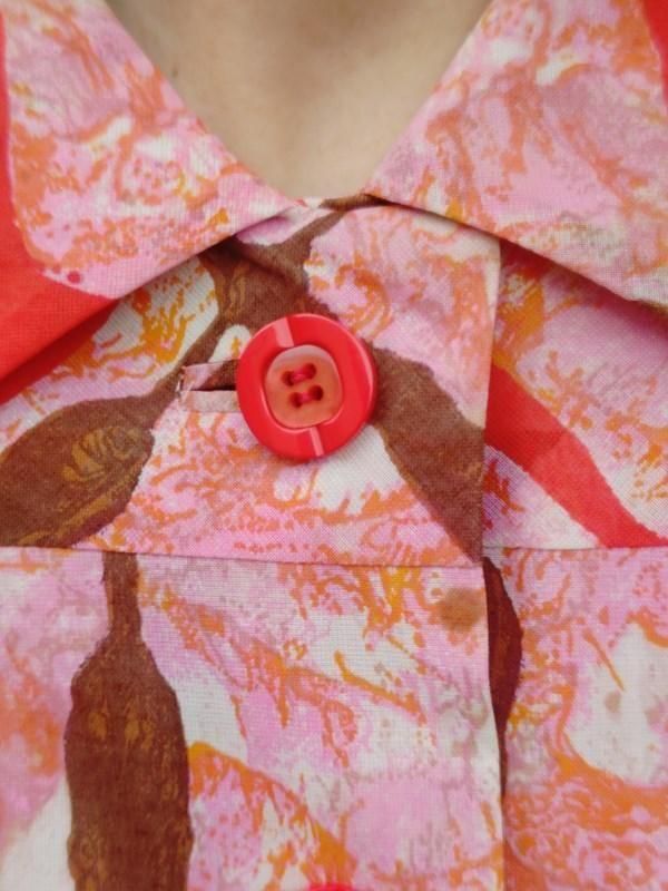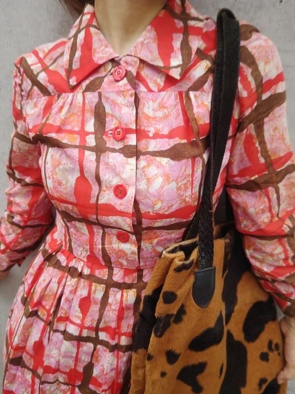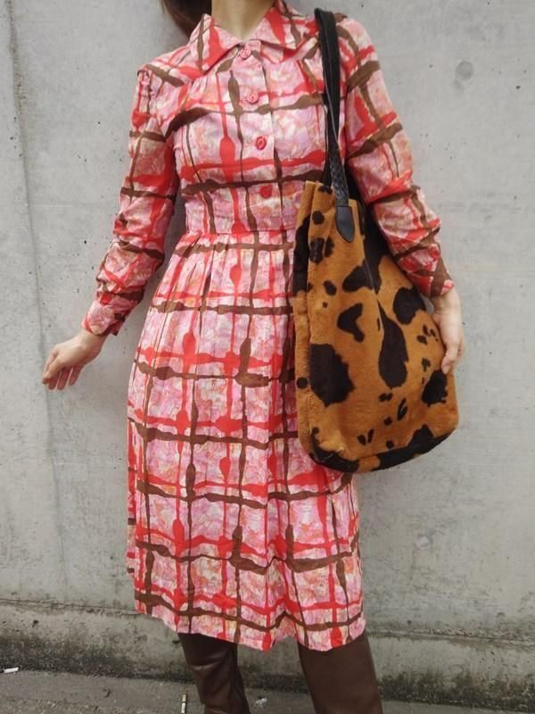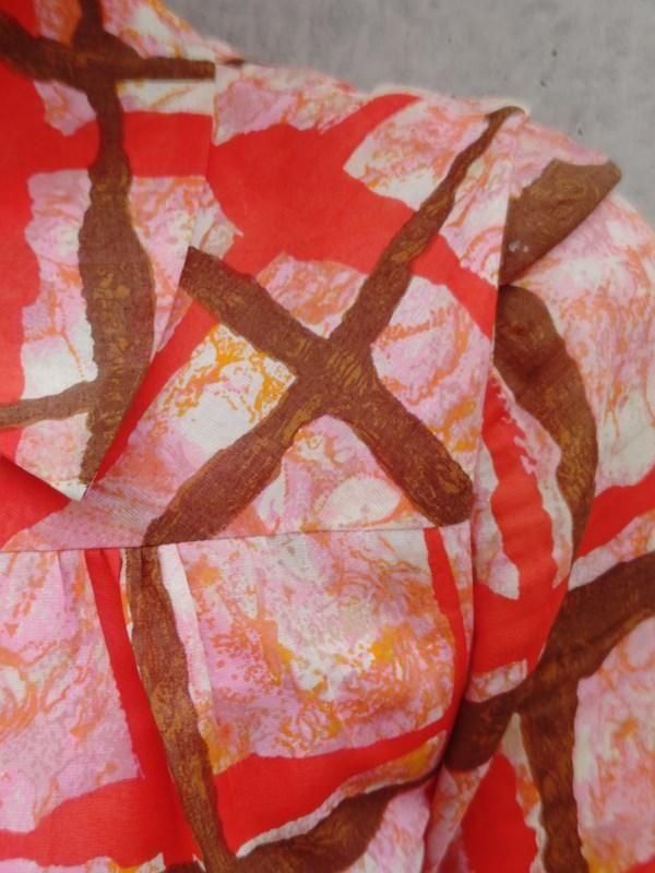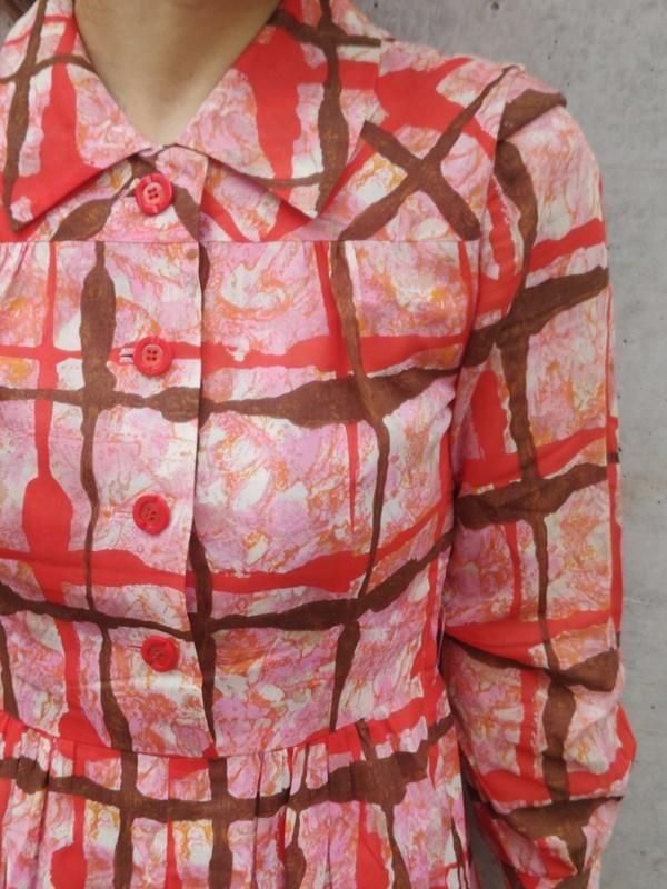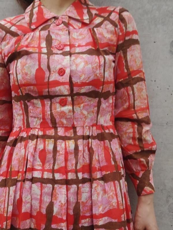 お仕立て品*赤・ピンク・茶・オレンジ柄♪レトロワンピ