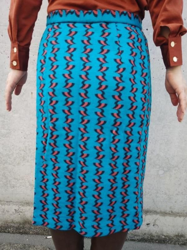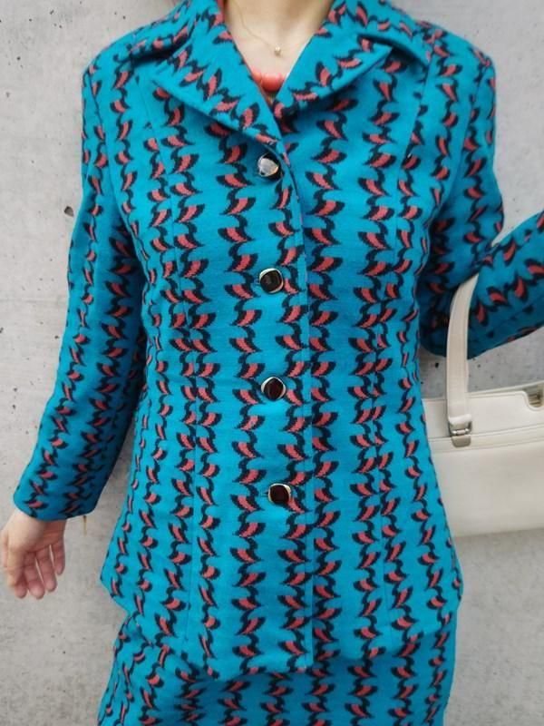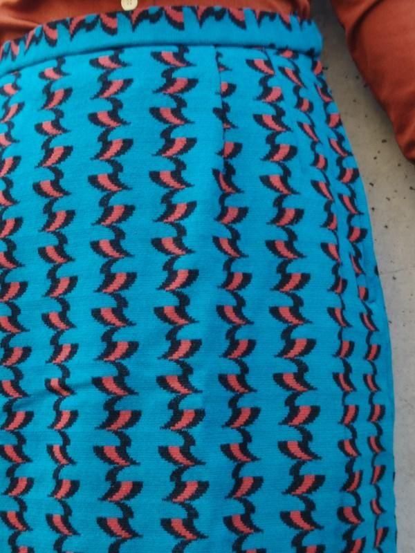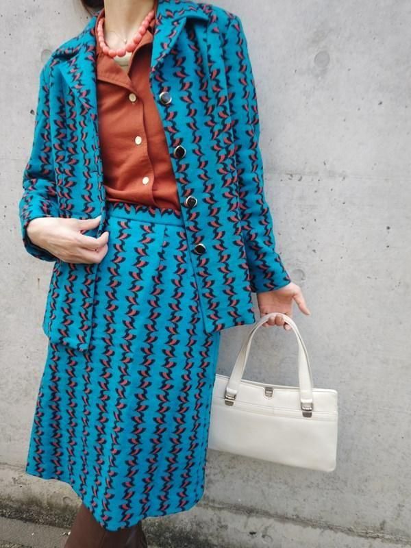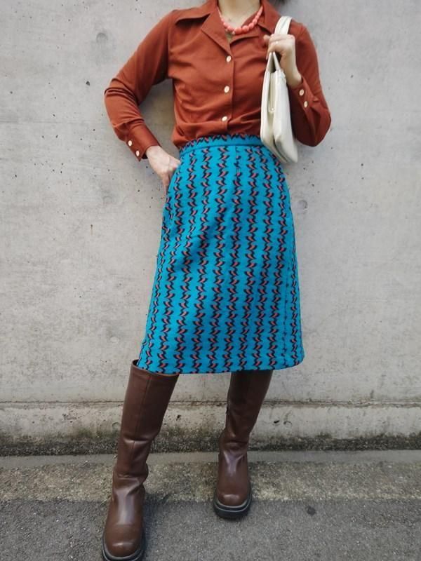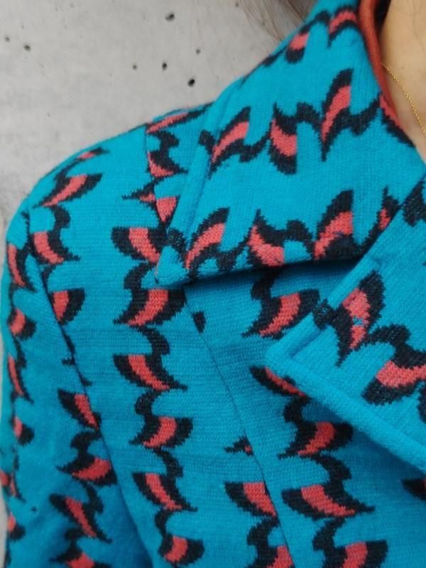 鮮やかブルーxオレンジx黒の幾何学柄がとっても素敵な