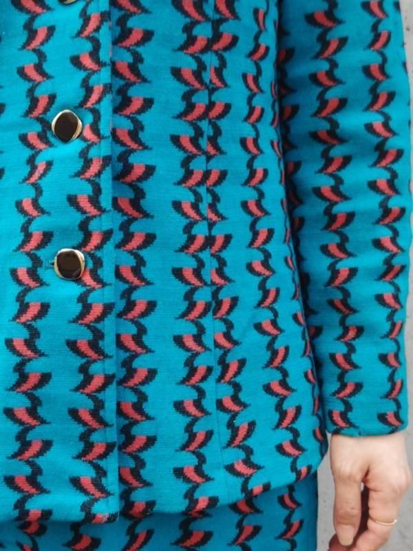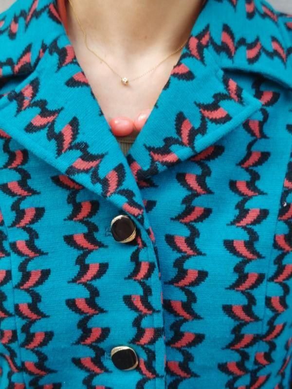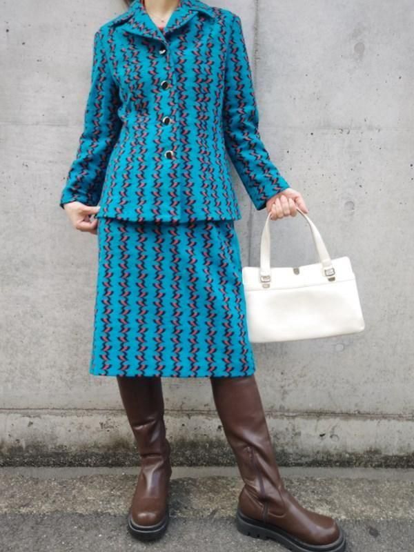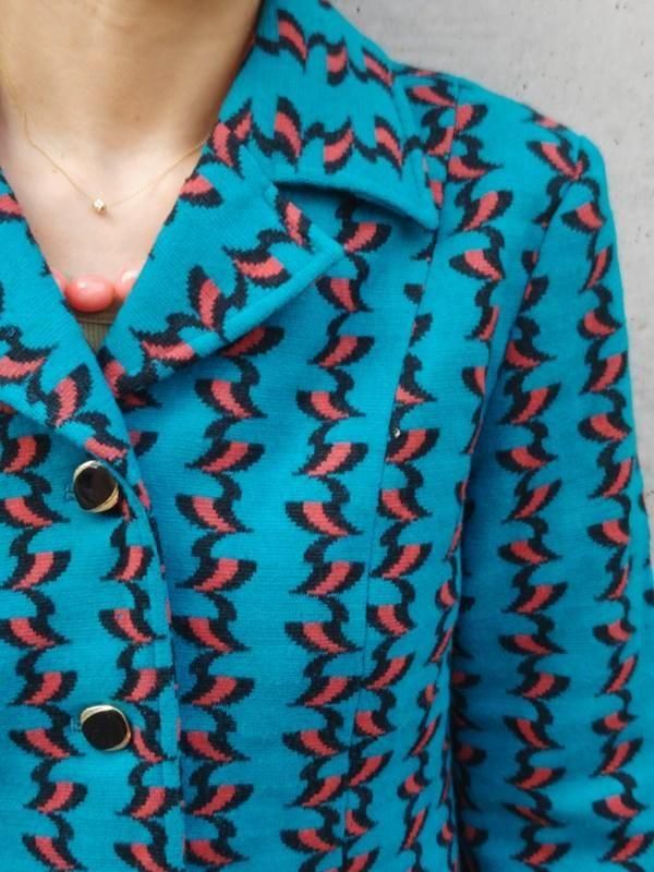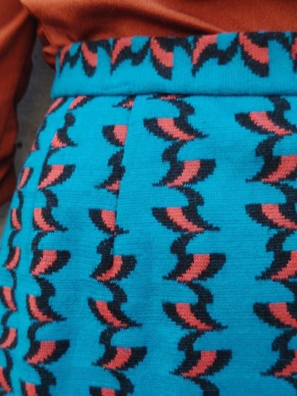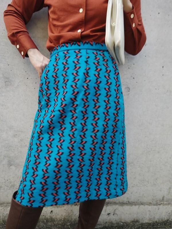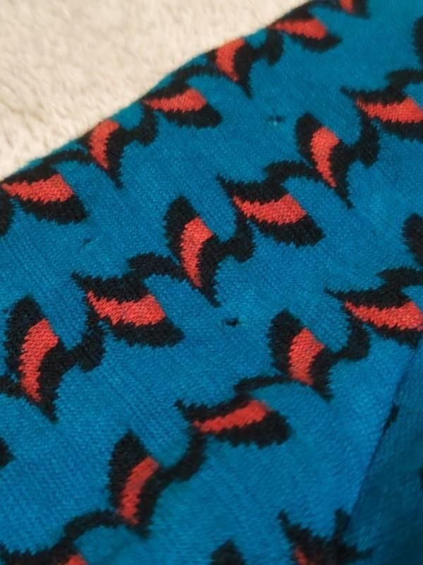 鮮やかブルーxオレンジx黒の幾何学柄がとっても素敵な