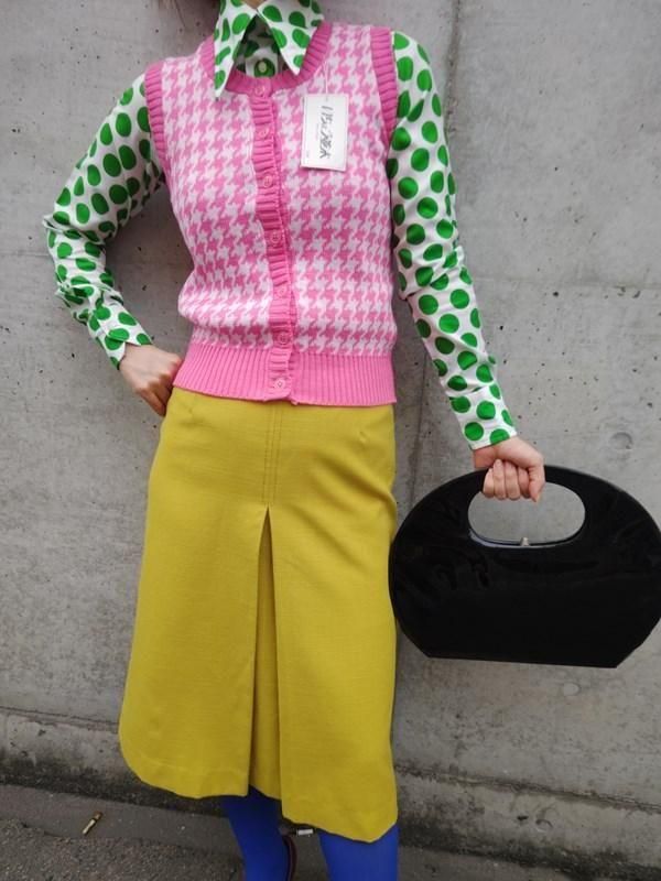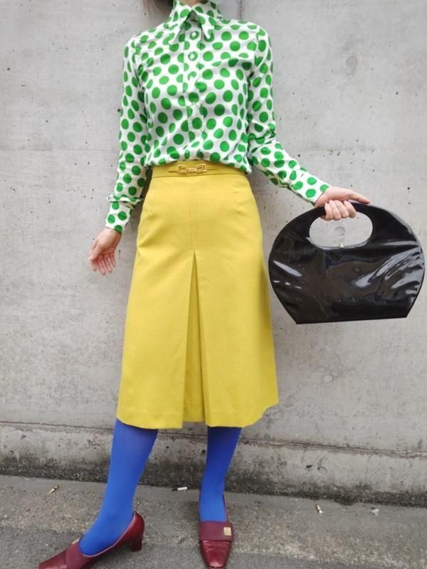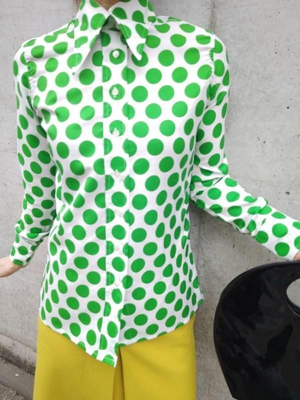 白地に大きな緑ドット柄がとびきりキュートなヴィンテージ