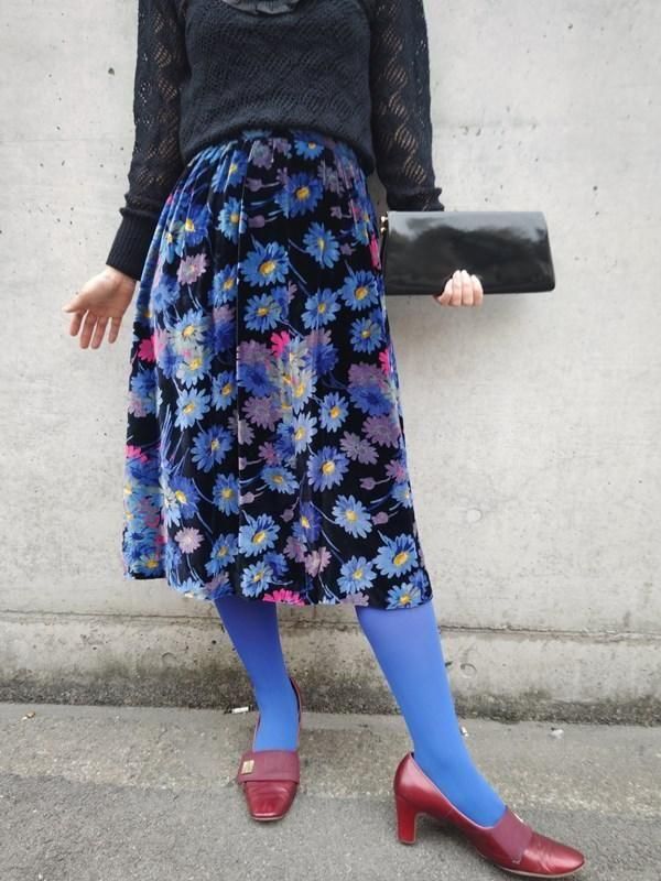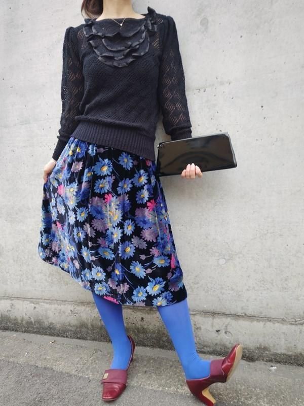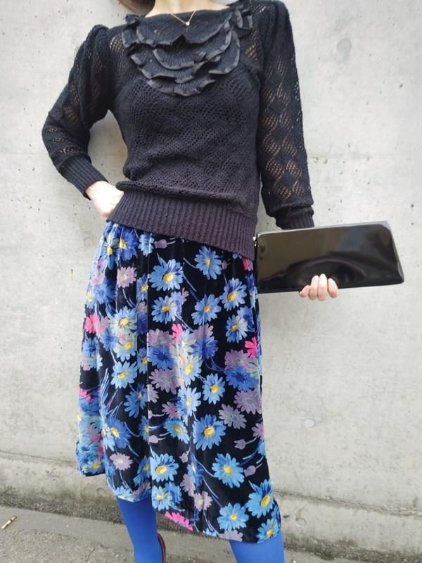 黒ベースにカラフルな花柄がとっても素敵なヴィンテージ