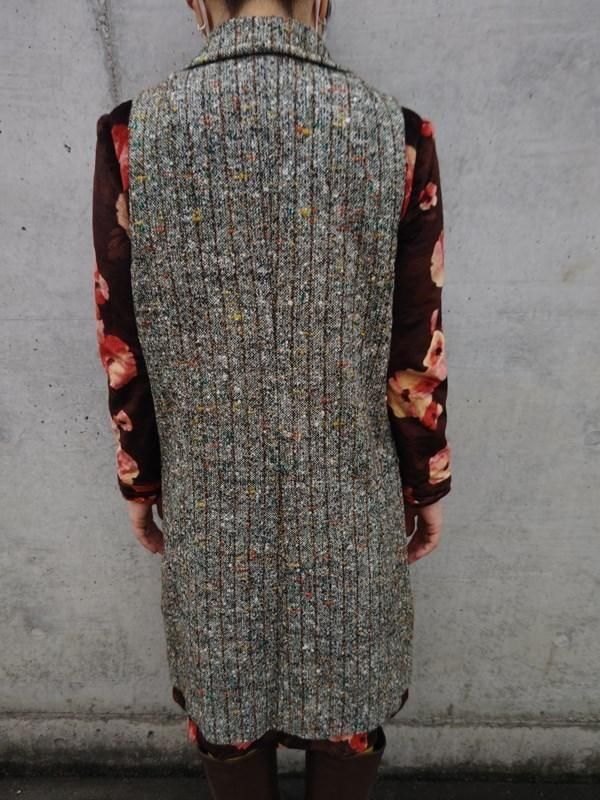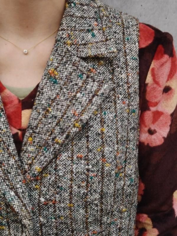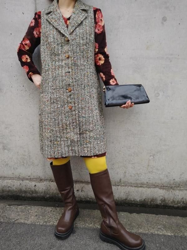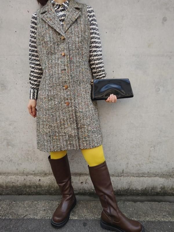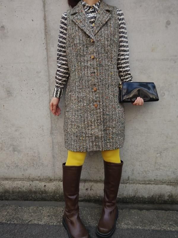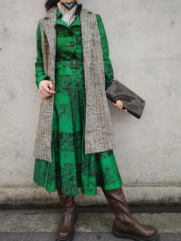 大きな襟やベスト風デザインもポイントで、シルエットが