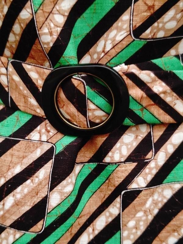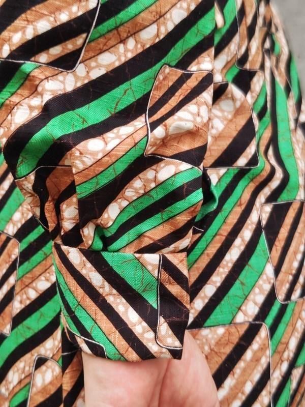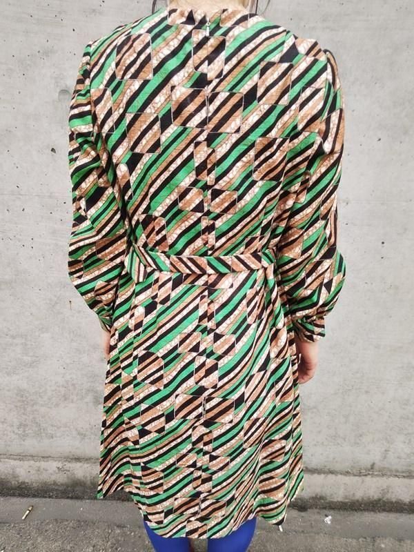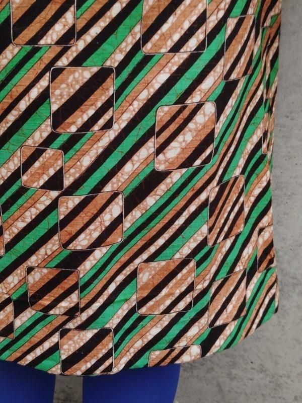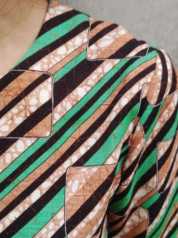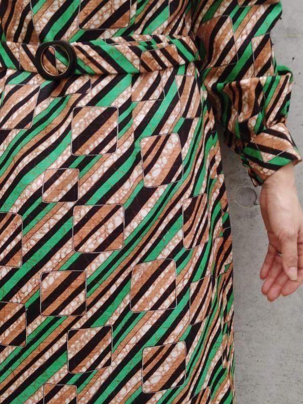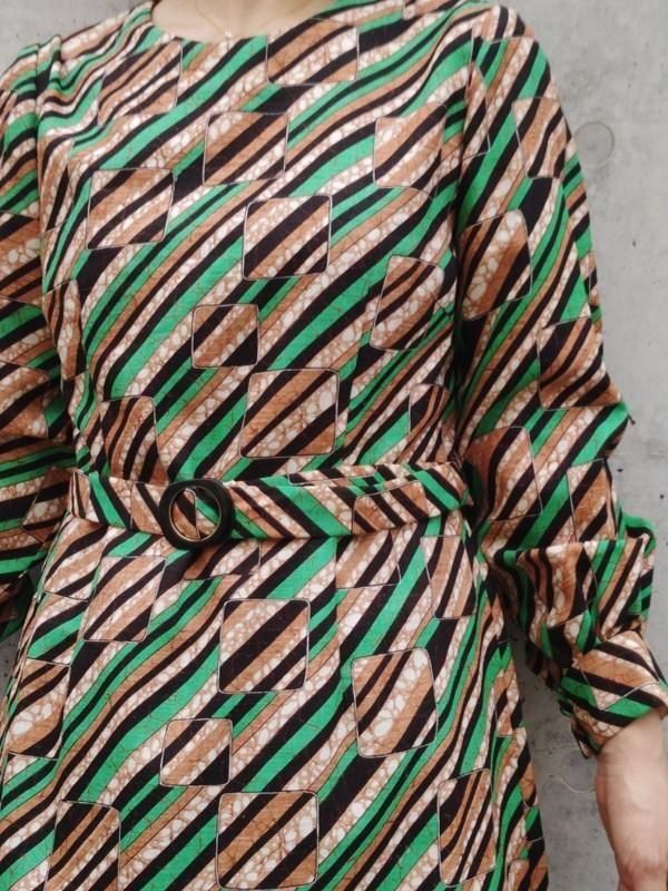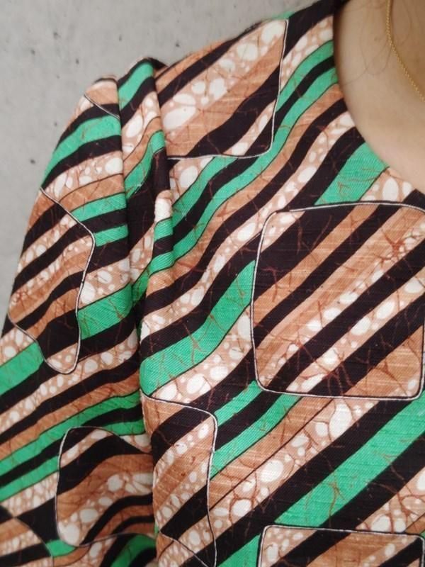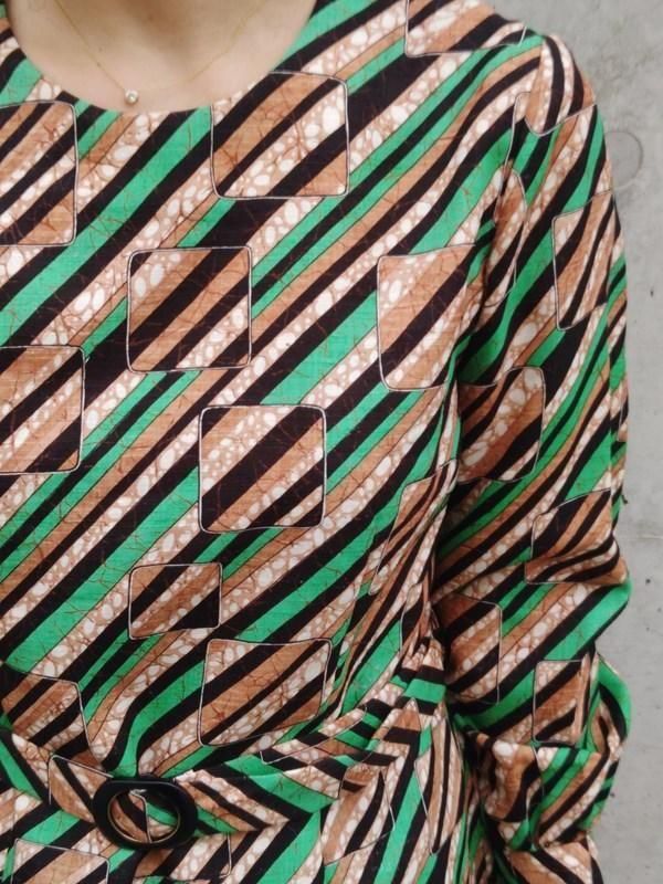 お仕立て品*緑・茶・黒・白のスクエアxライン柄がとっても