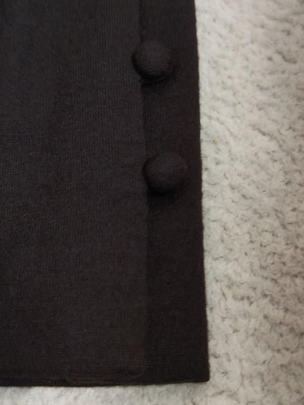 スカート両サイドと袖口のくるみボタンや両サイドポケット