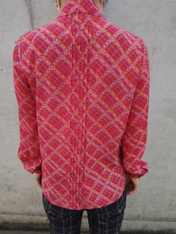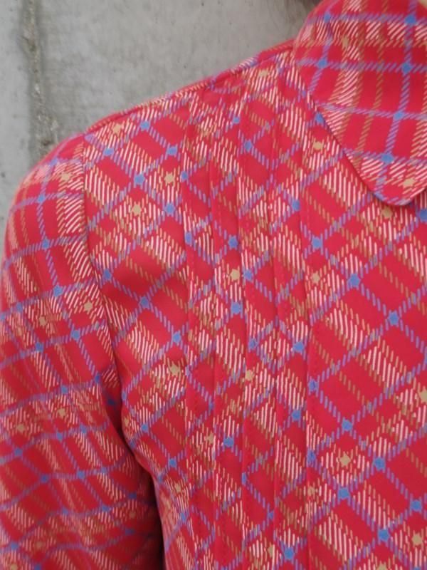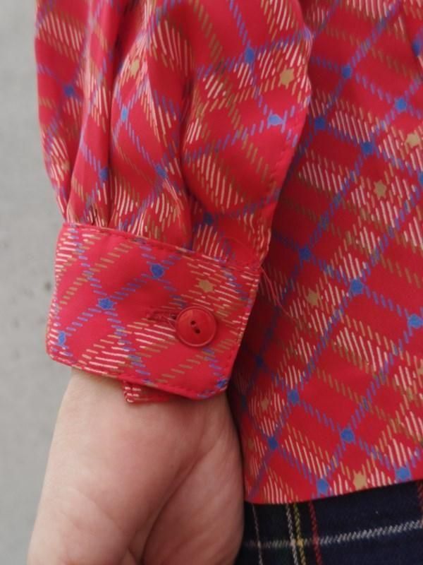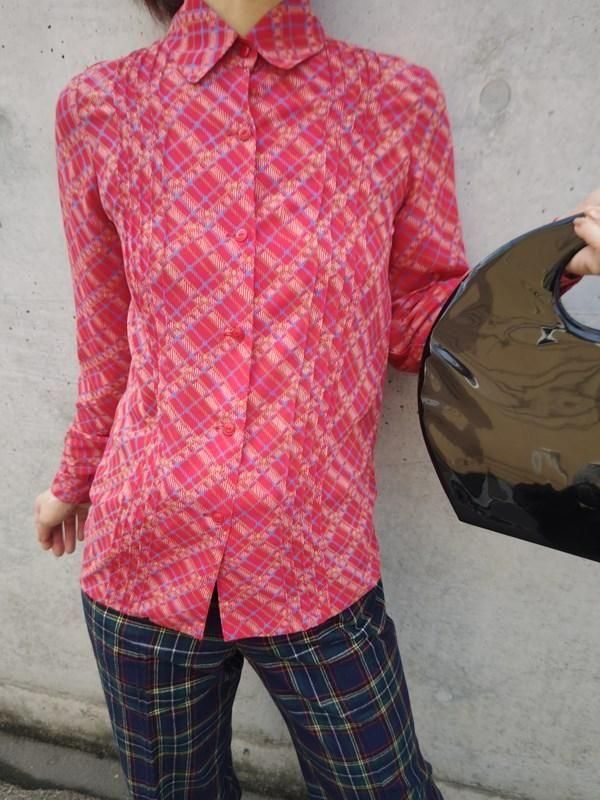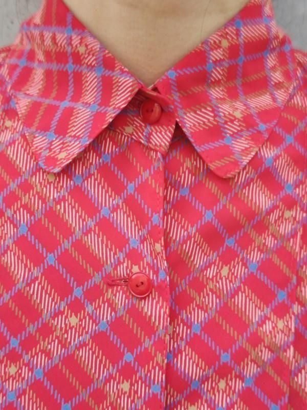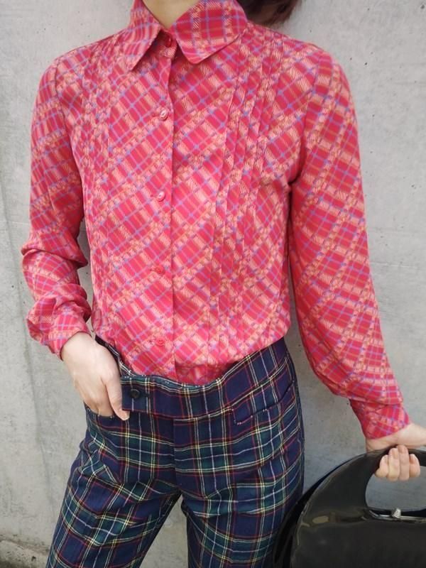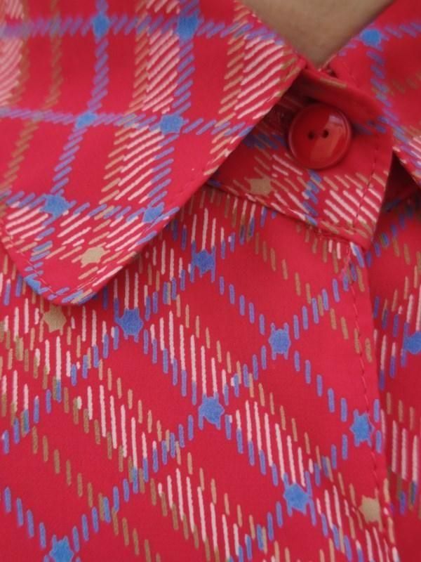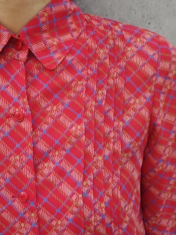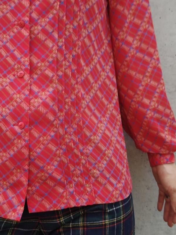 赤・ベージュ・ブルーチェック柄♪レトロブラウス