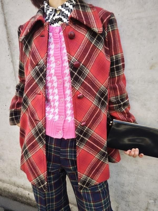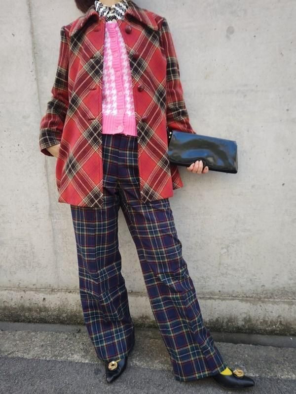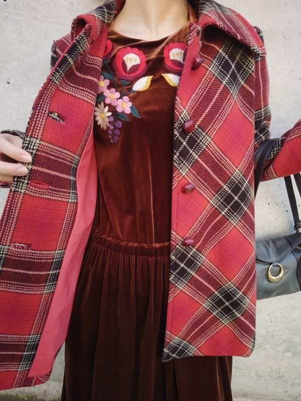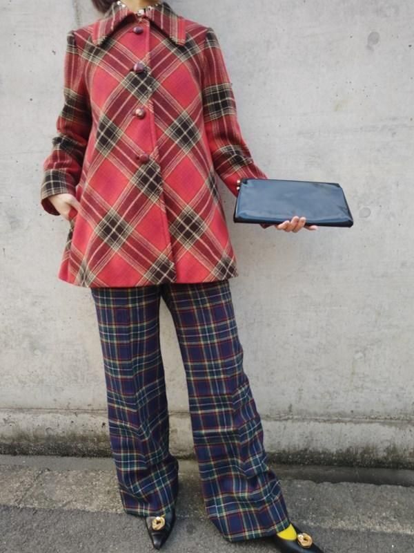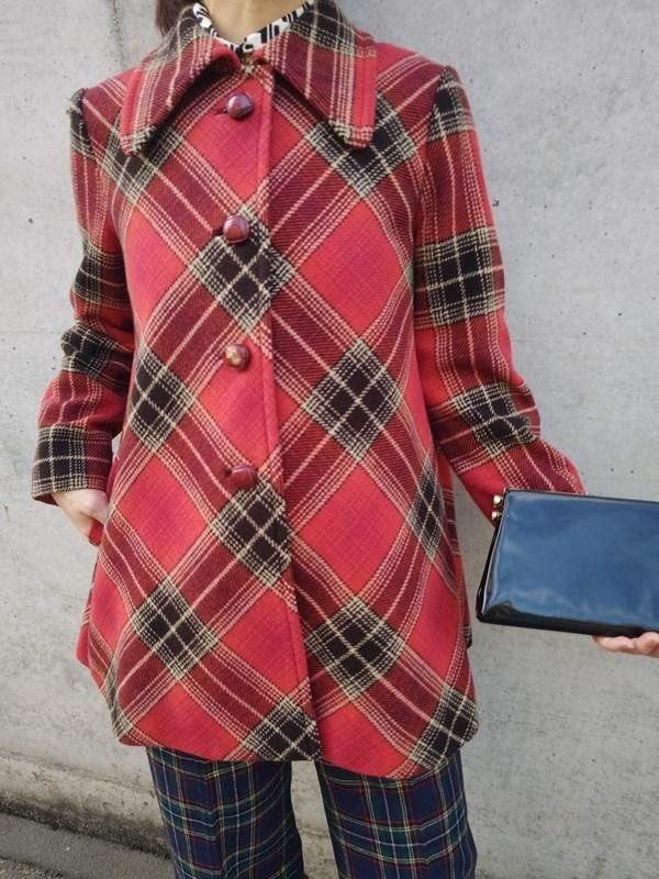 お仕立て品*赤ベースのチェック柄がレトロでとっても