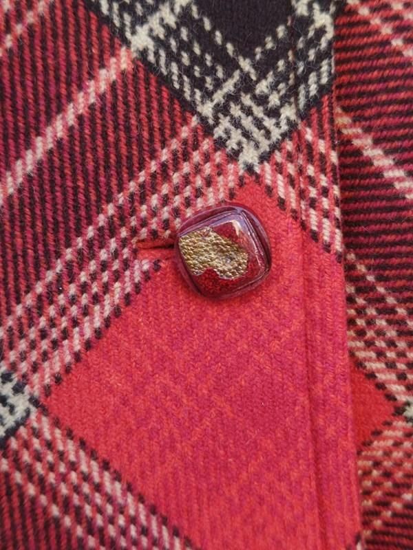 コンディション* B(年代物古着なので多少の使用感があり、上から3つ目ボタンの上部分がはげてます。←画像参照。)
