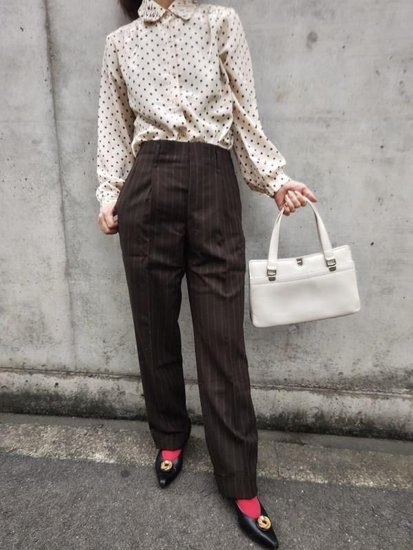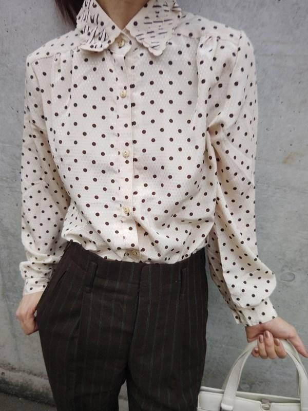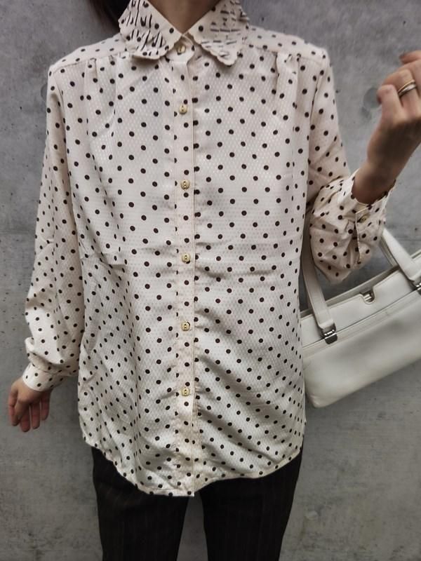 クリーム色ベースにブラウンドット柄が素敵なヴィンテージ