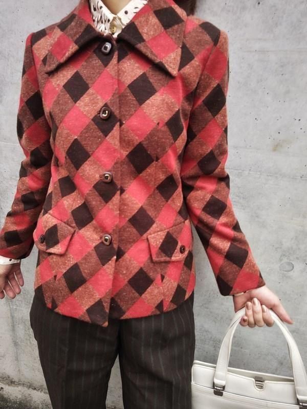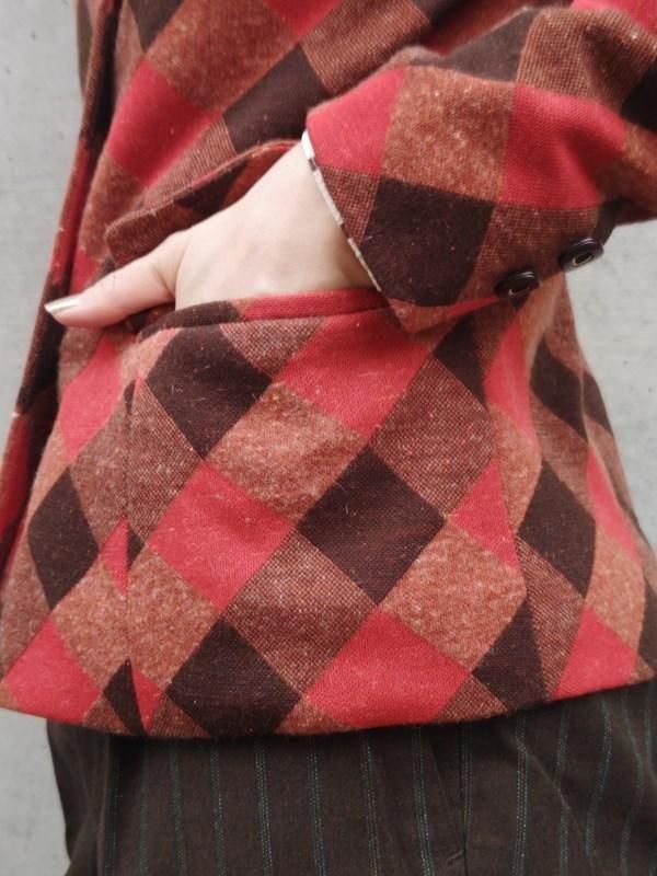 お仕立て品*オレンジ・赤茶・こげ茶の格子柄がとっても