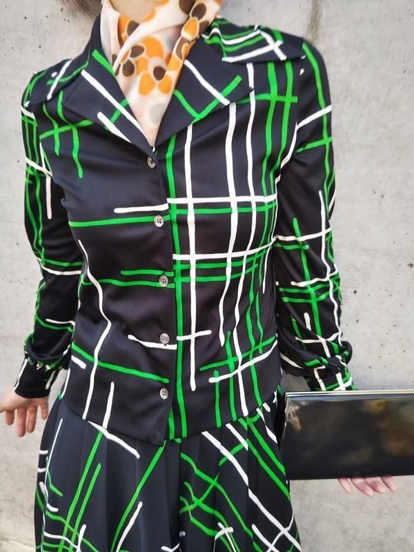 黒地に緑白の幾何学柄がとっても素敵なヴィンテージ