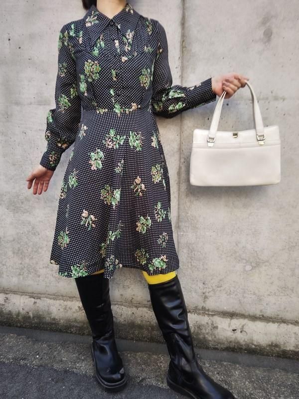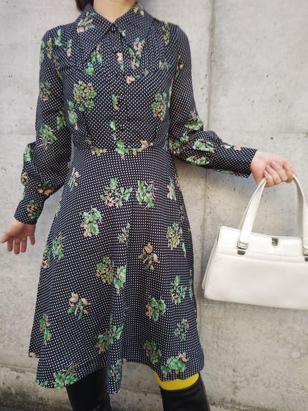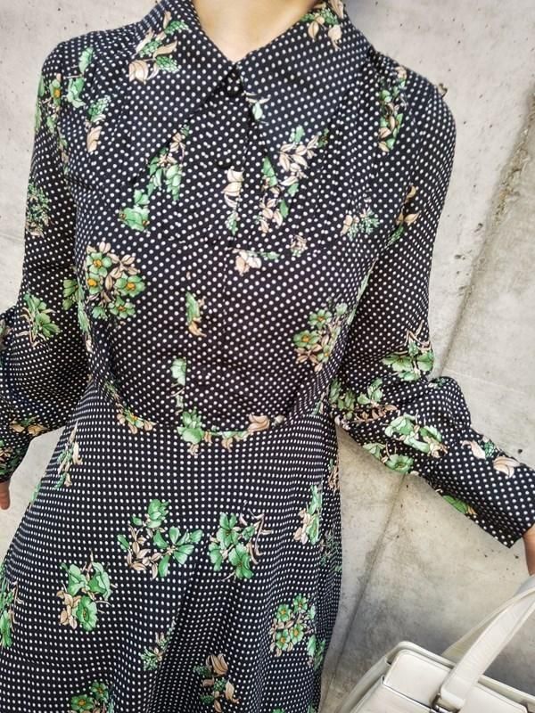 お花xドット柄♪レトロワンピ