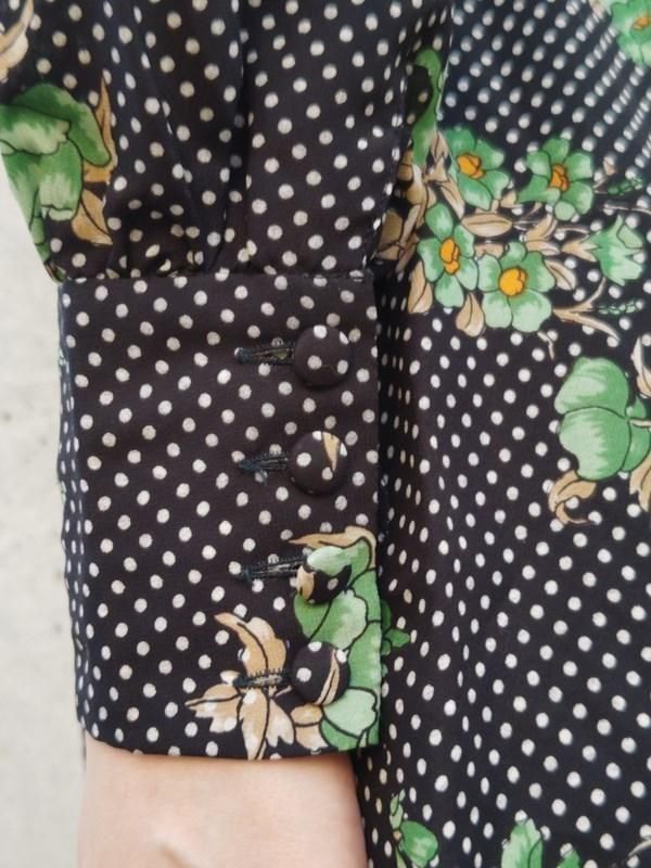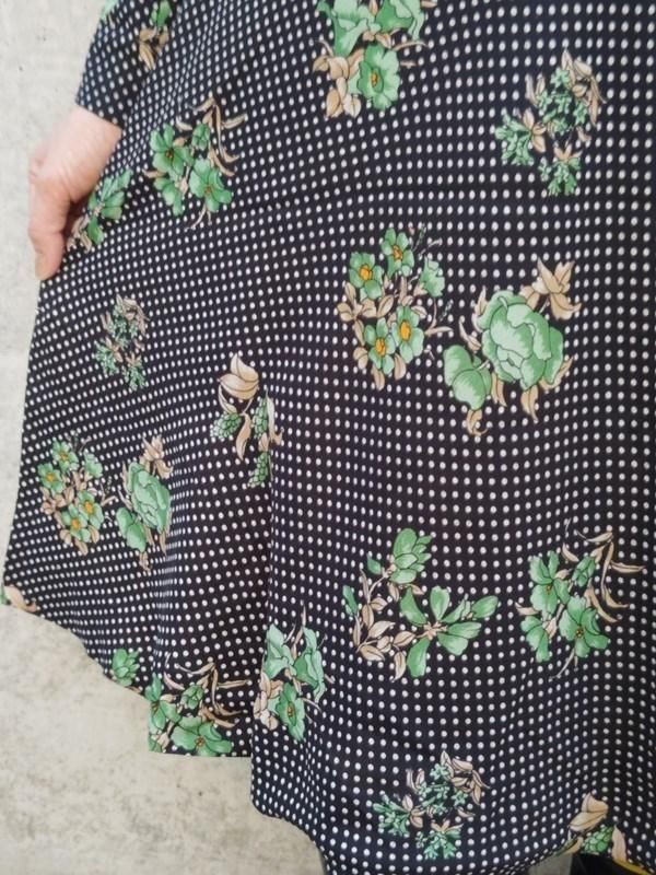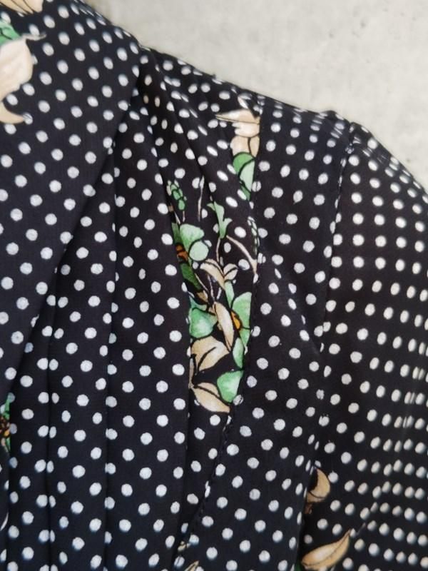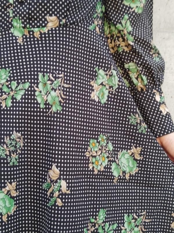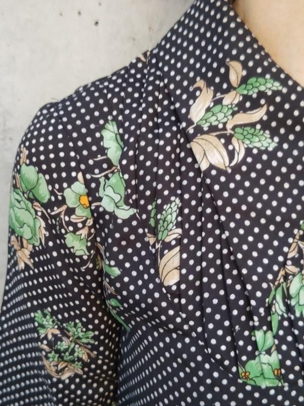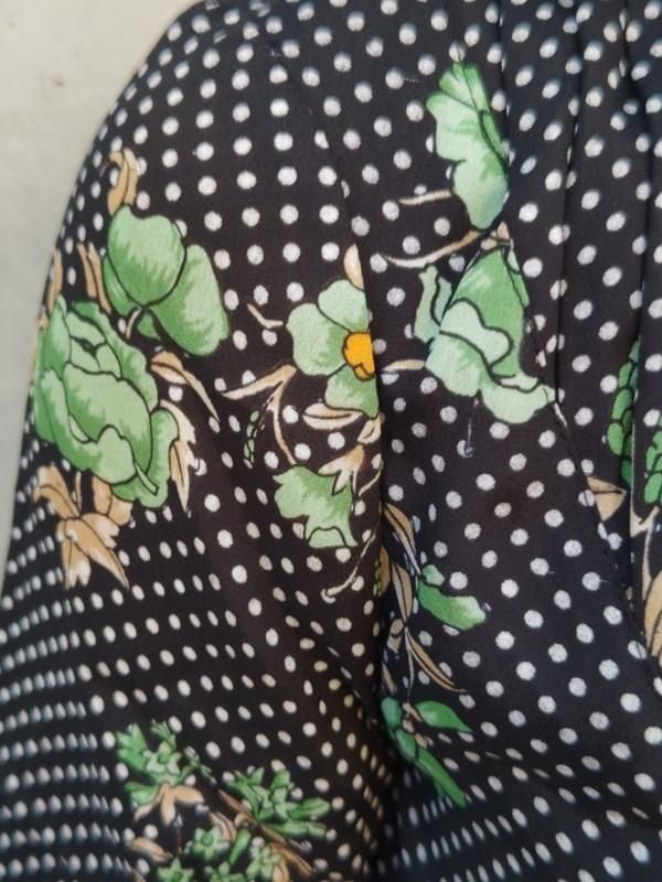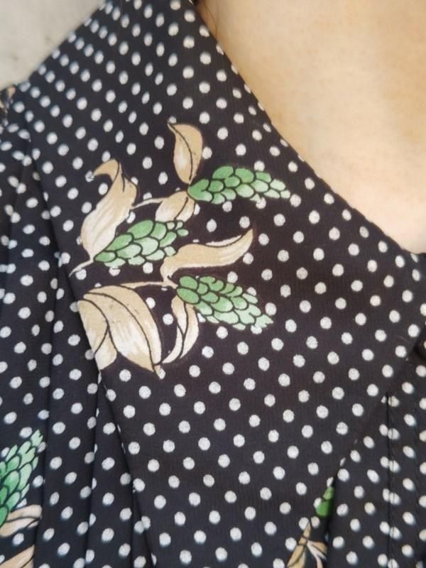 黒ベースに緑花・白ドット柄がとっても素敵なヴィンテージ