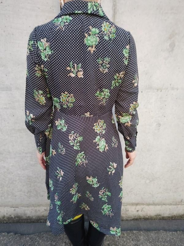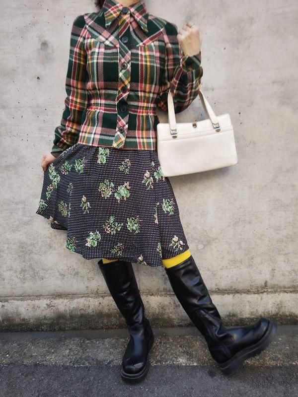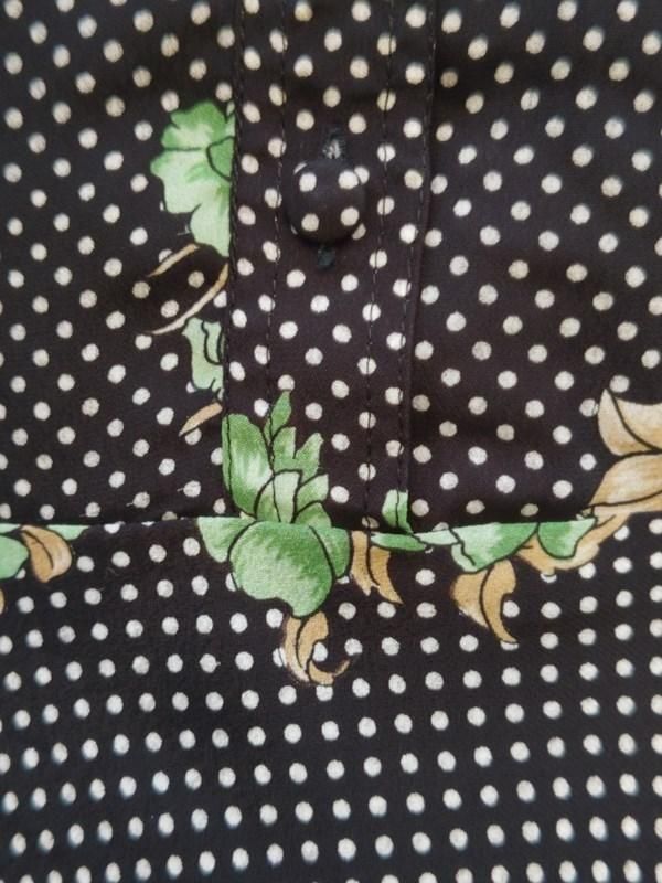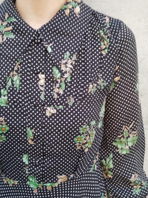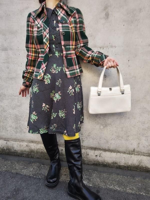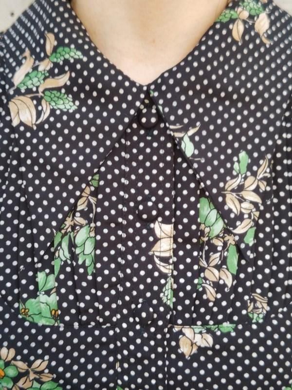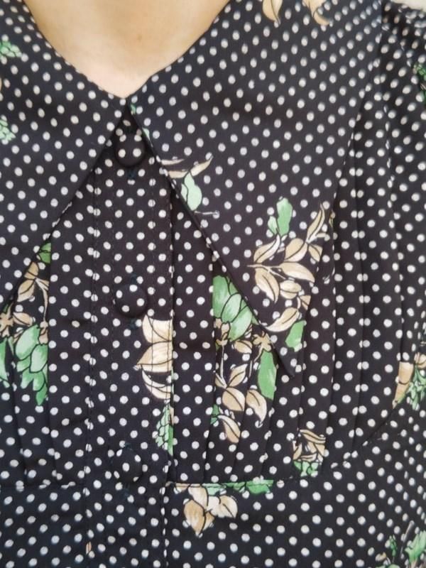 黒ベースに緑花・白ドット柄がとっても素敵なヴィンテージ