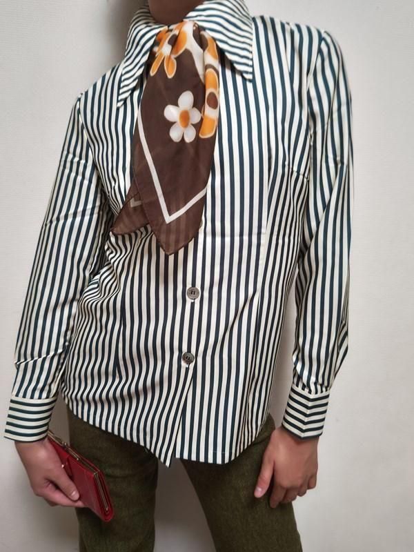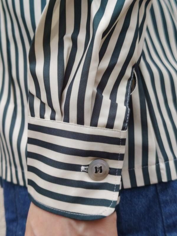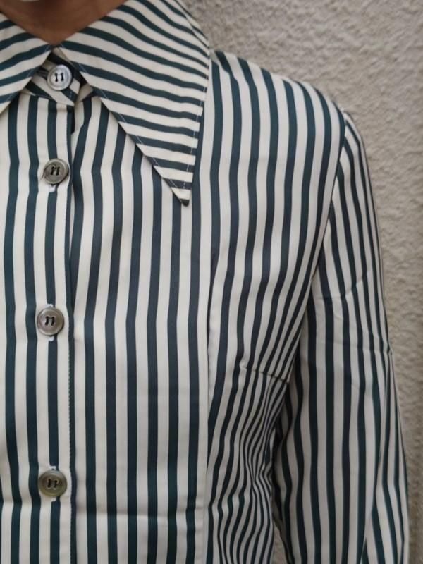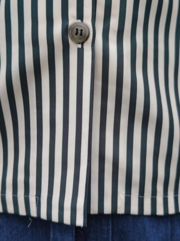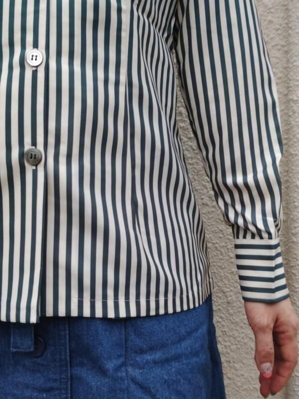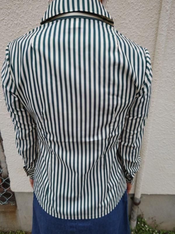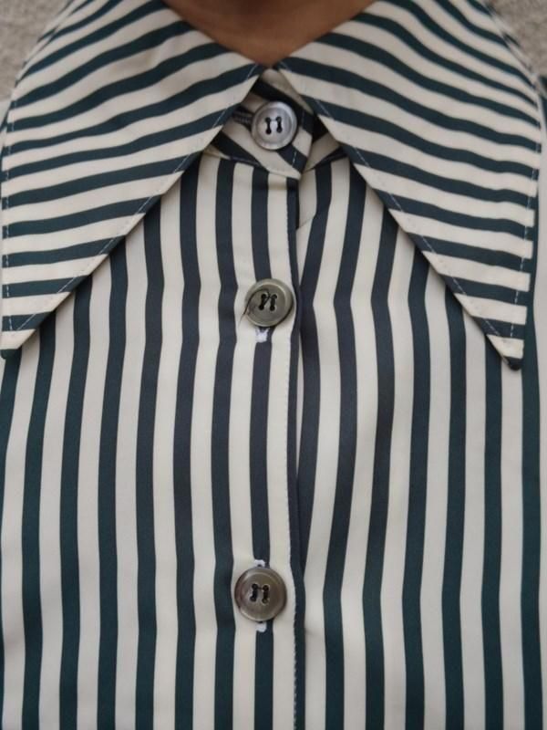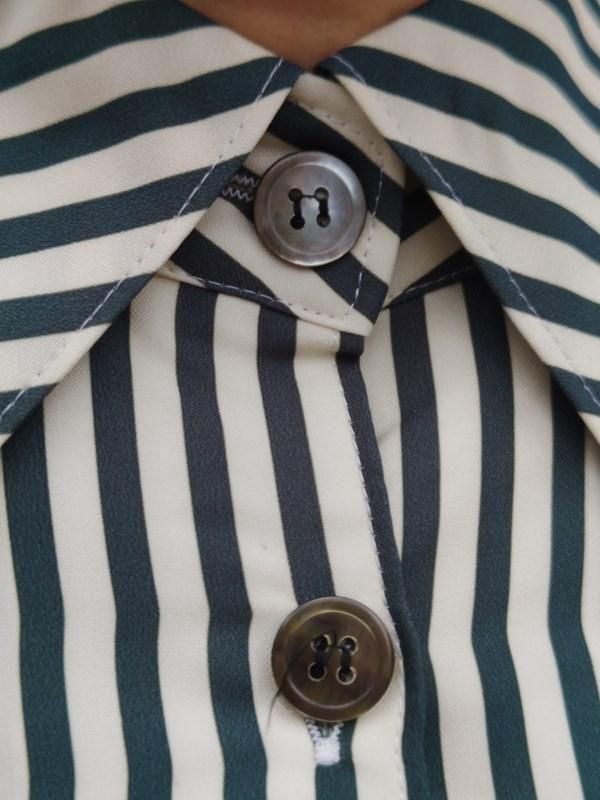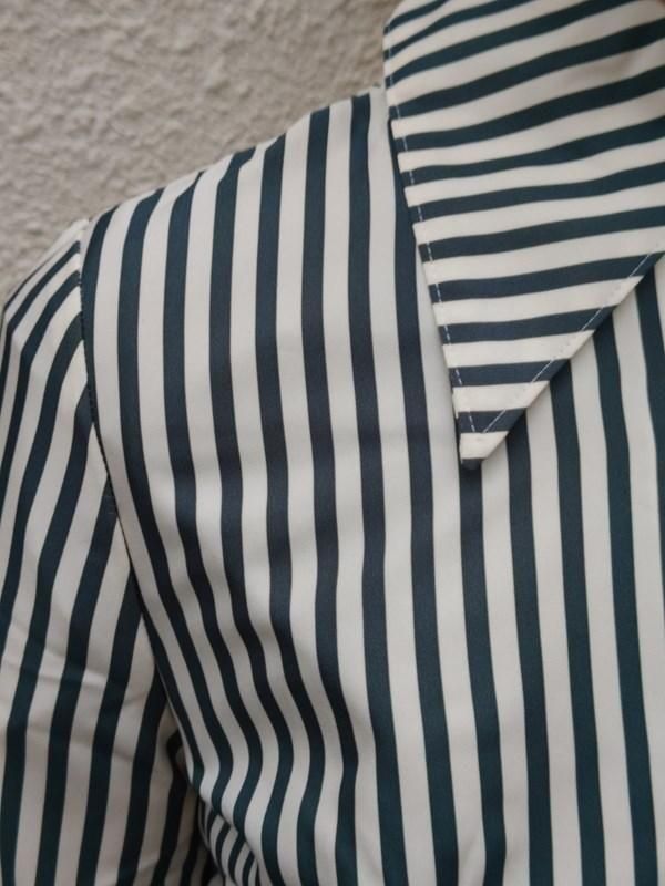 大きめ襟に大きめボタン、カフス柄切り替えなど・・・
