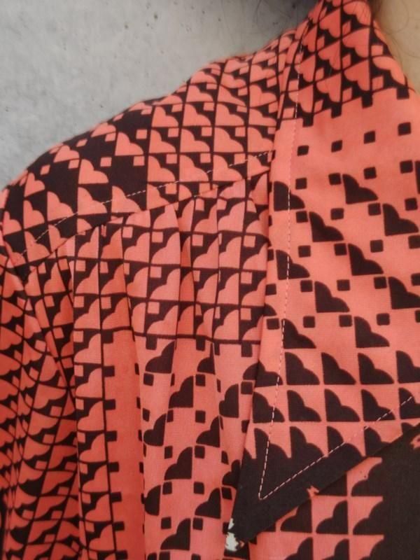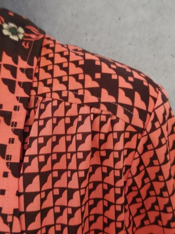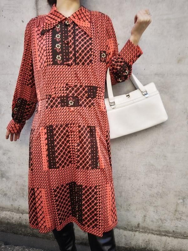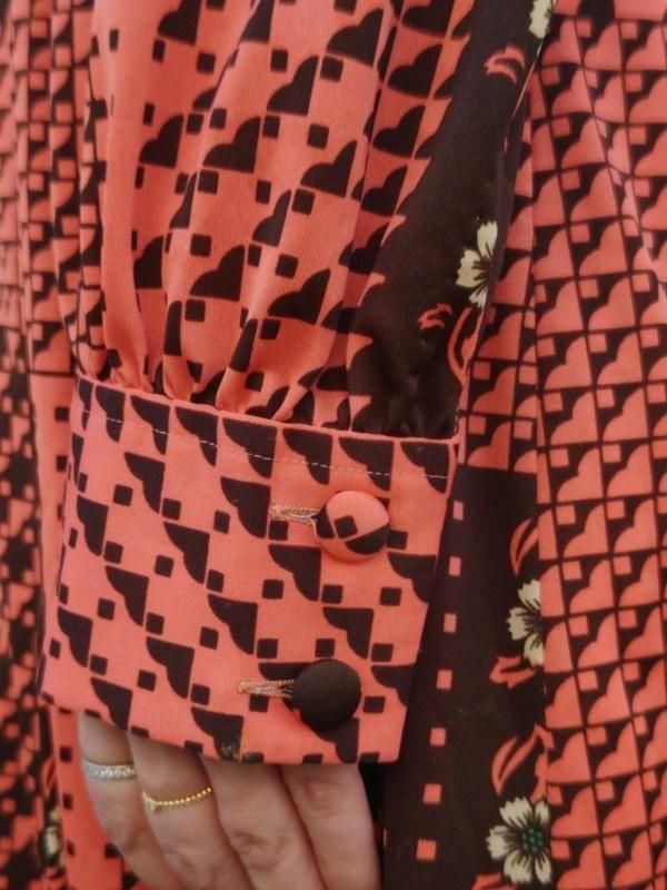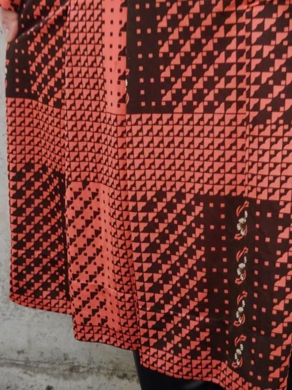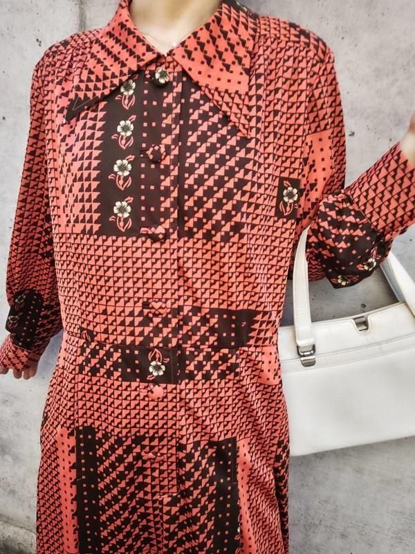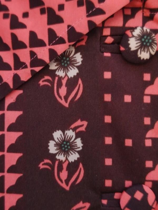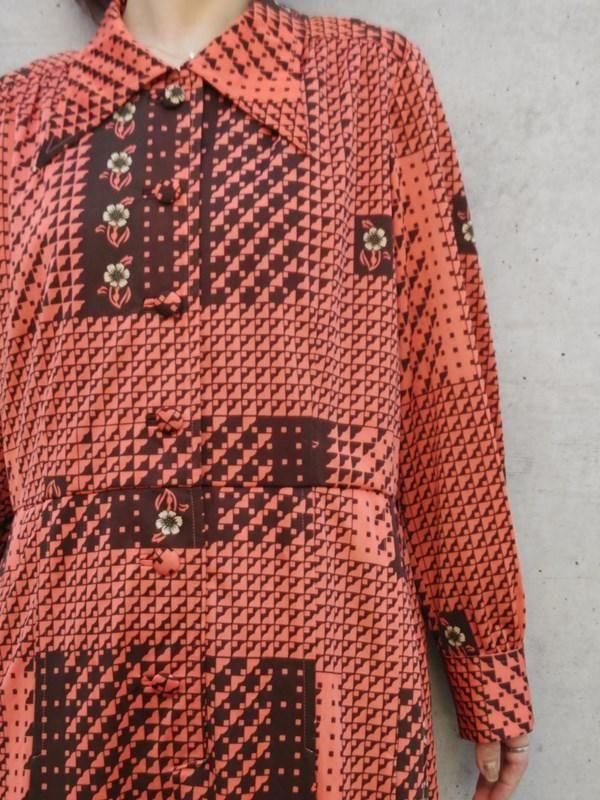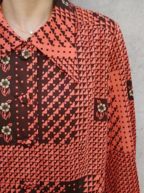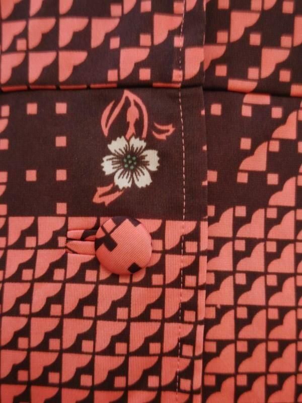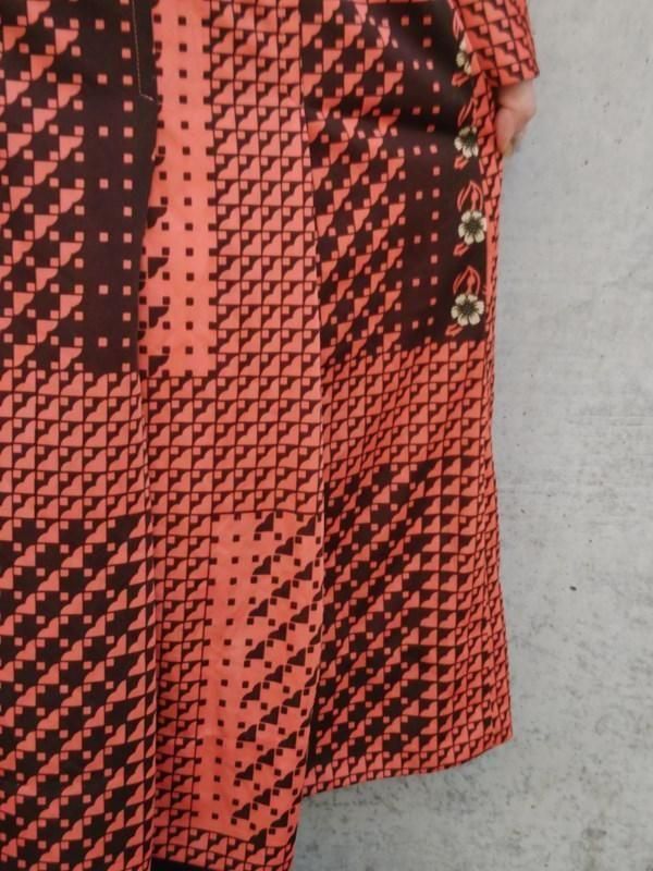 お仕立て品*オレンジ・茶のお花x幾何学柄が