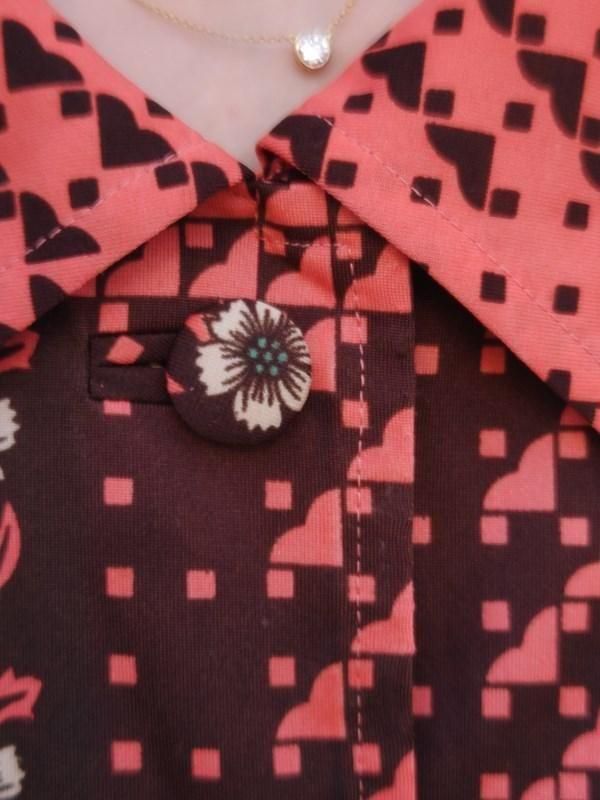 大きな襟やくるみボタンもポイントでシルエットが可愛いです。