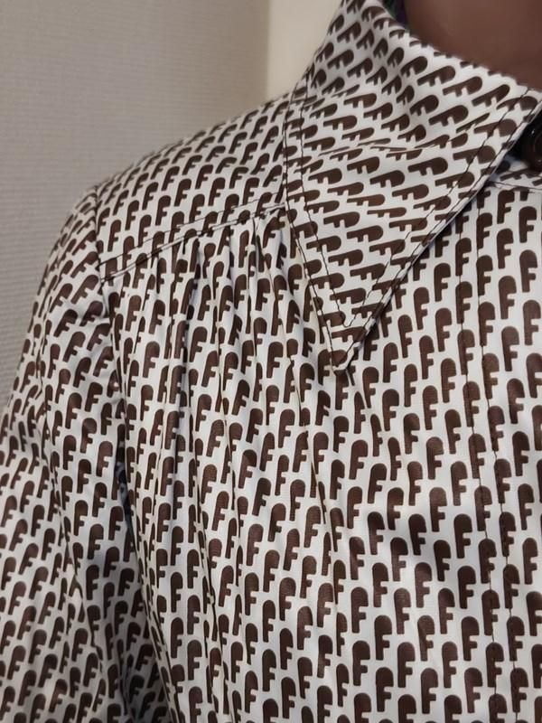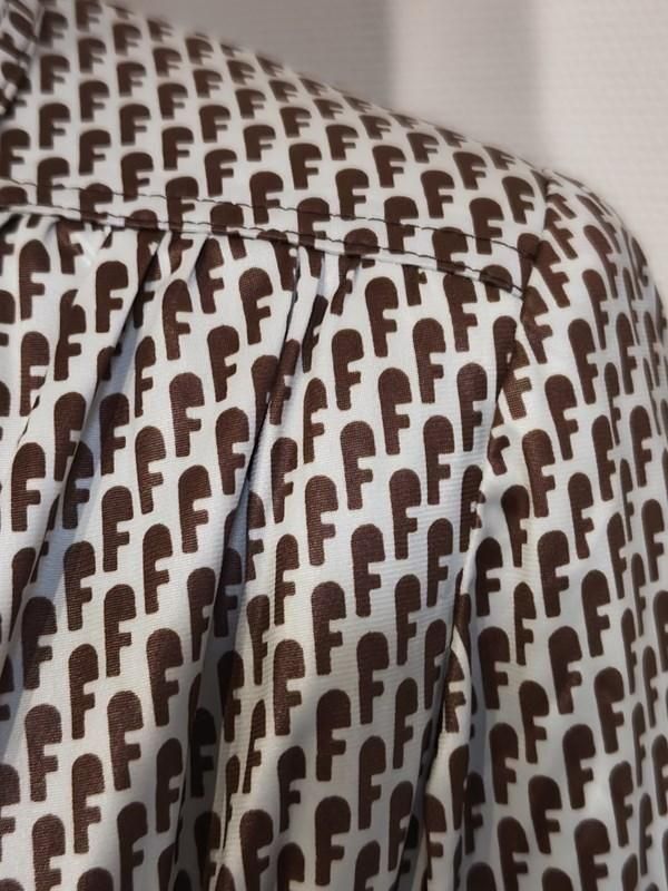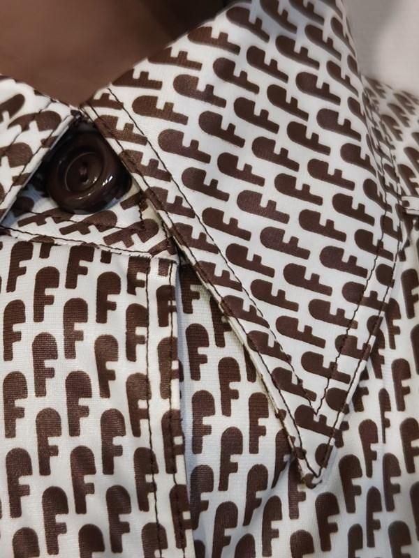 ホワイトベースにブラウンの「F」の様な柄がとっても