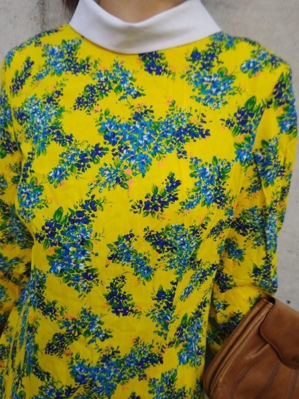 お仕立て品*黄ベースに青・緑・オレンジの花柄がとっても