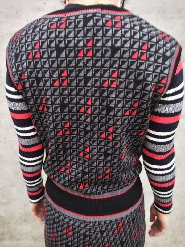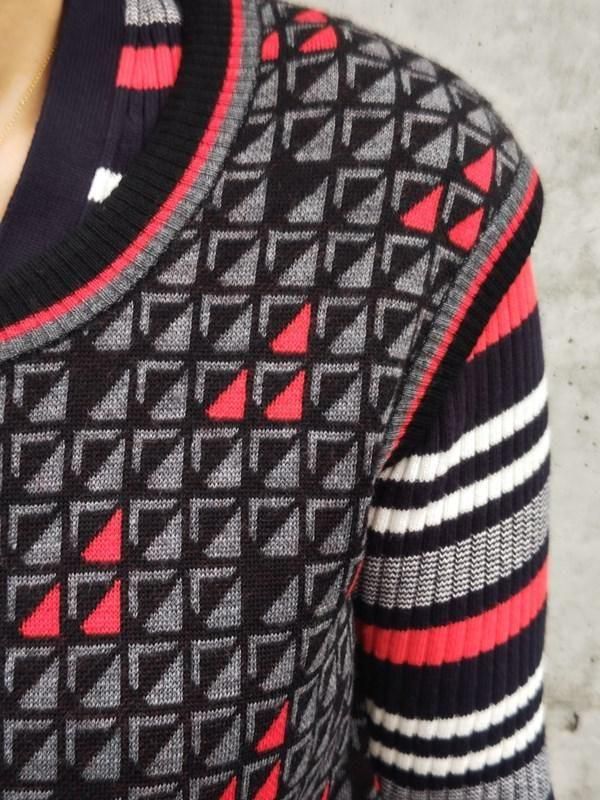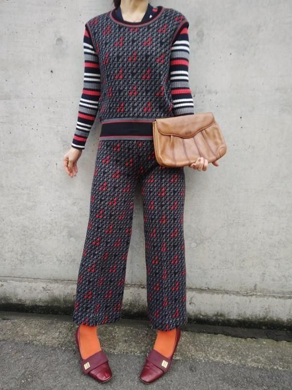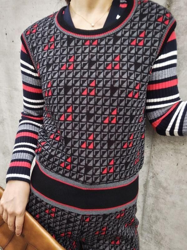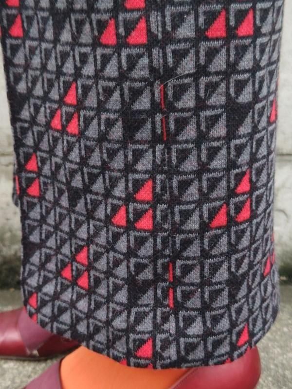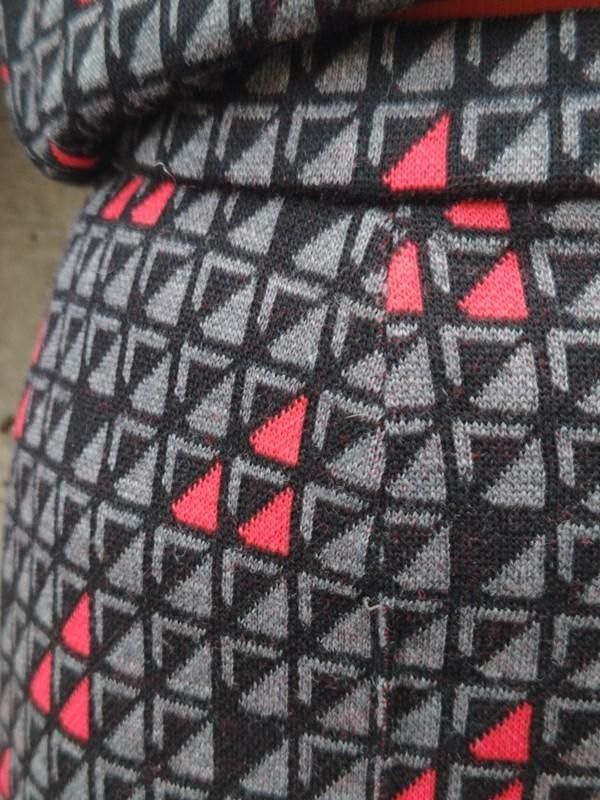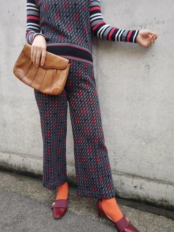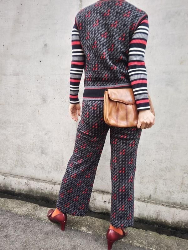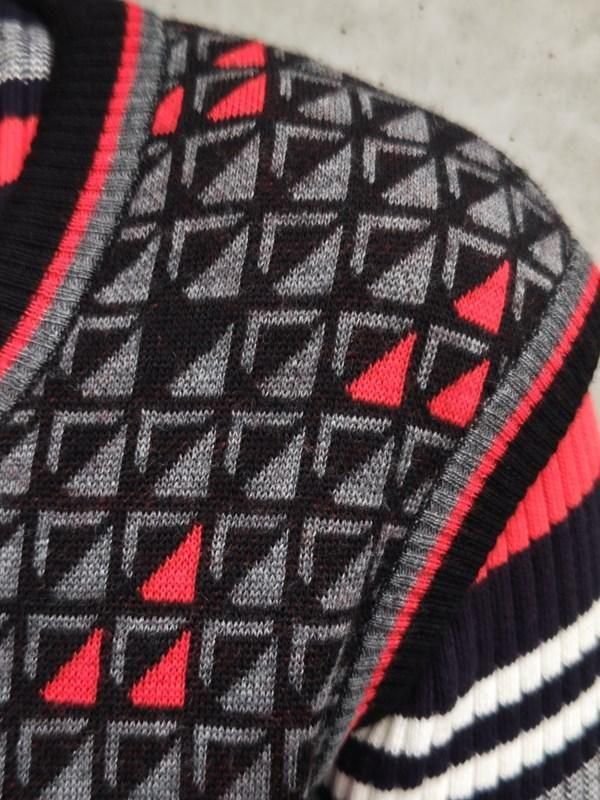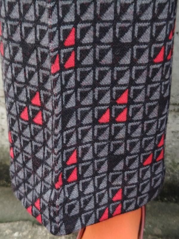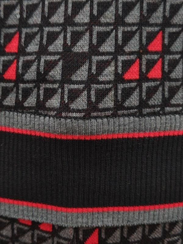赤・黒・グレーのまるでテトリスの様な幾何学柄が