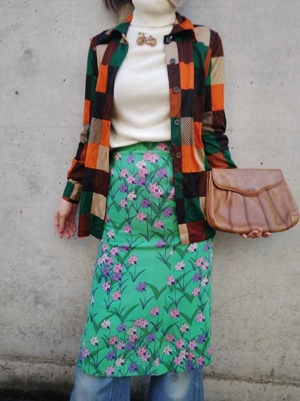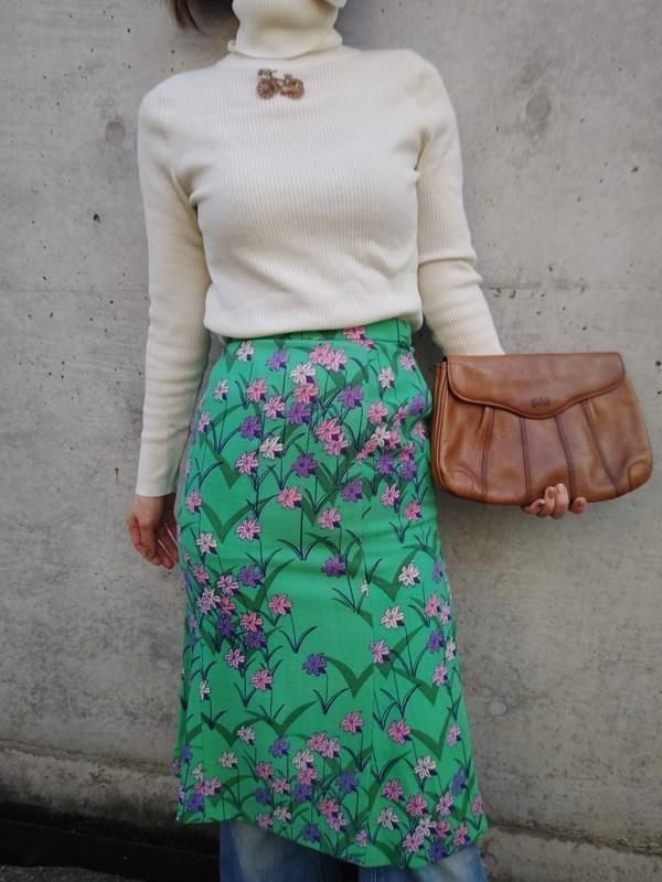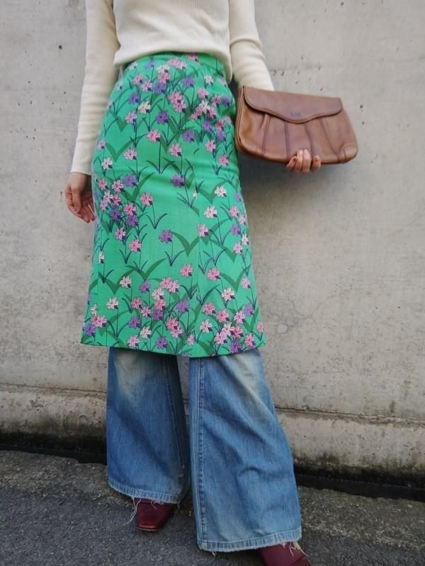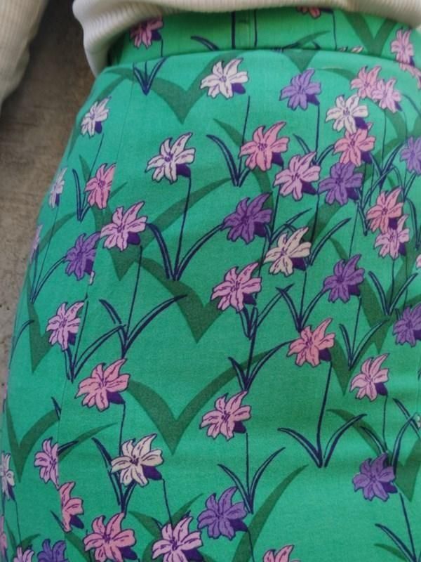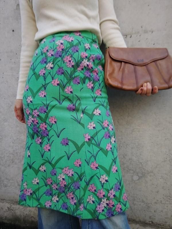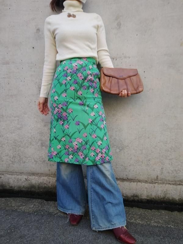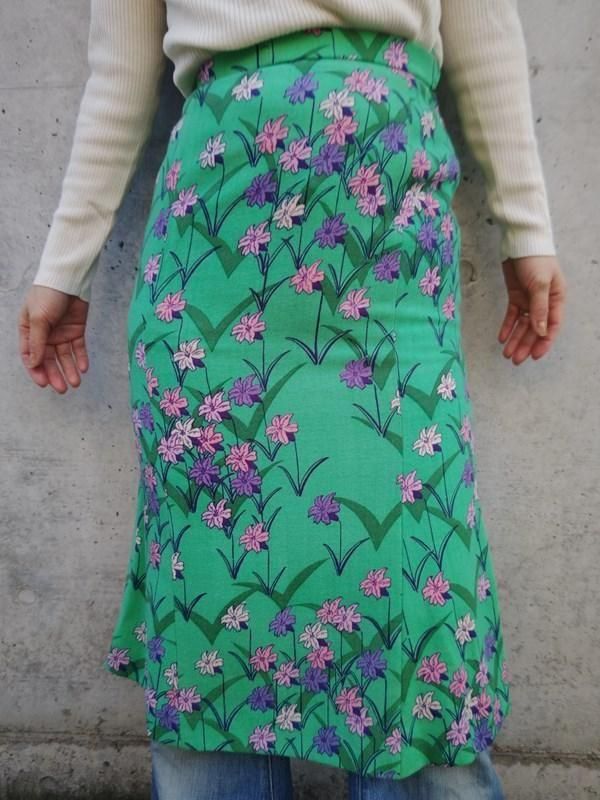 白の花柄がとっても素敵なヴィンテージスカートです。