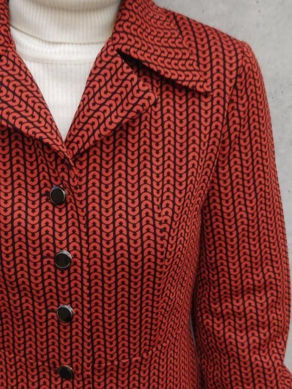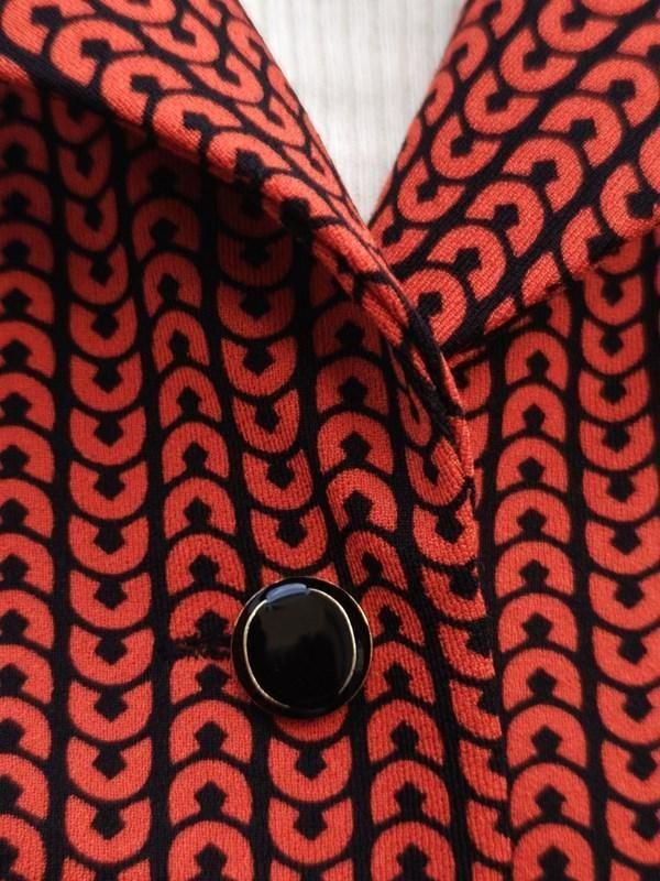 オレンジがかった赤x黒の幾何学柄がとっても素敵な