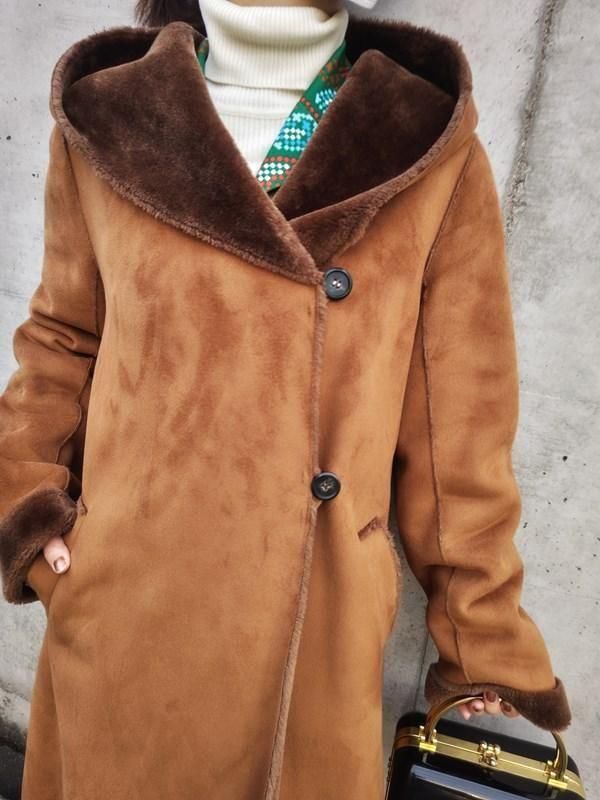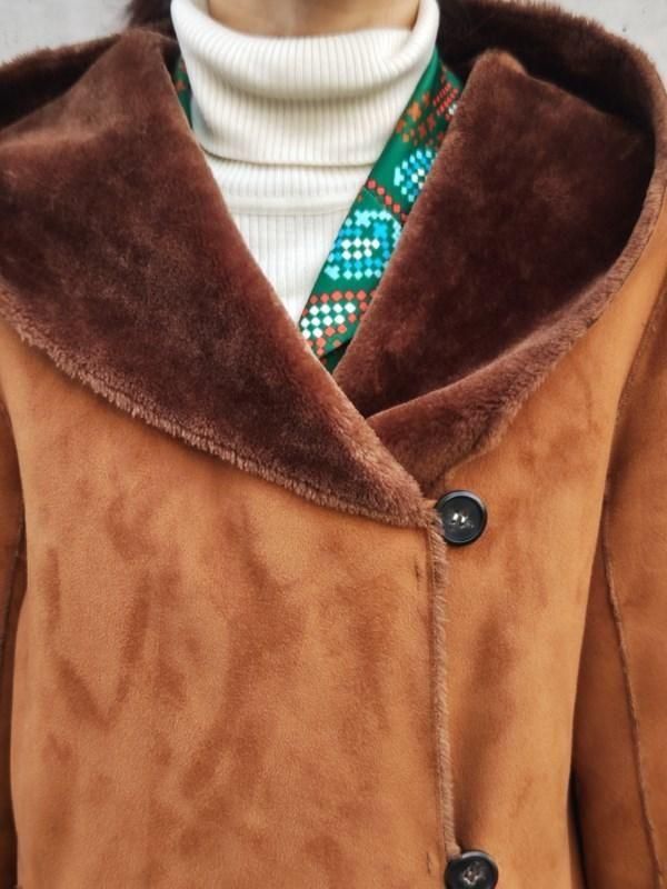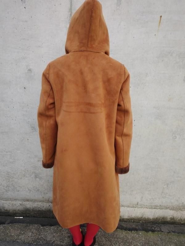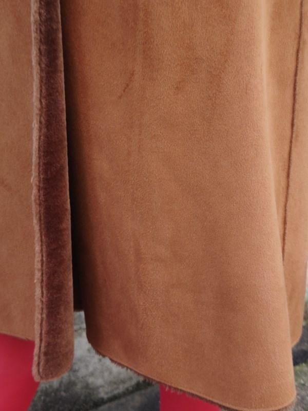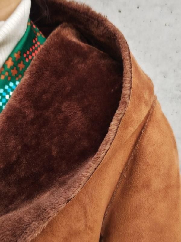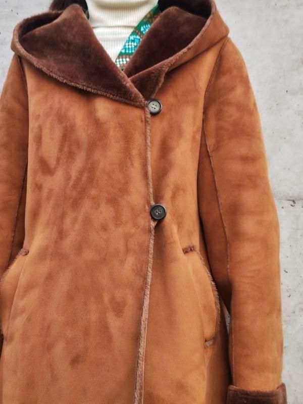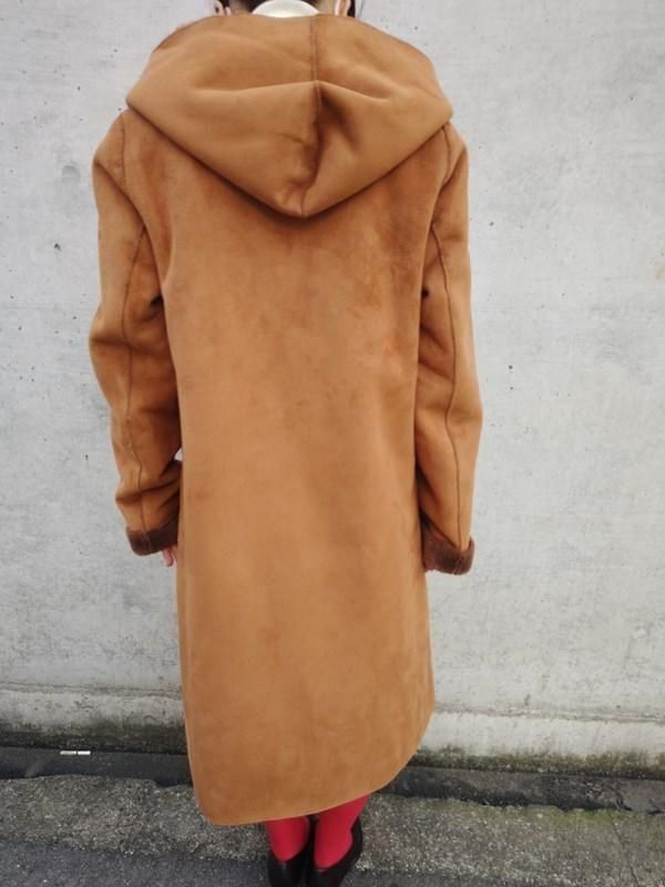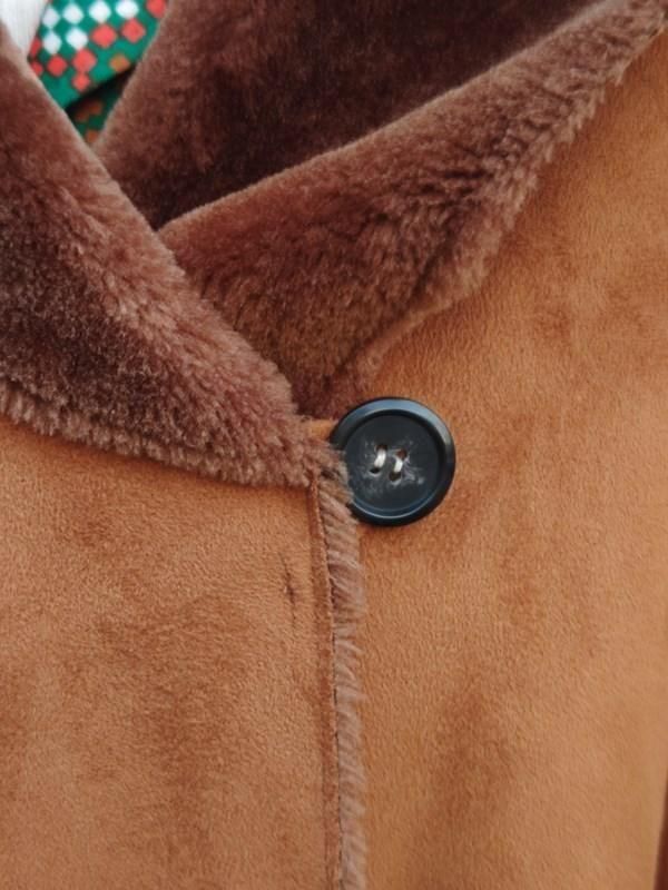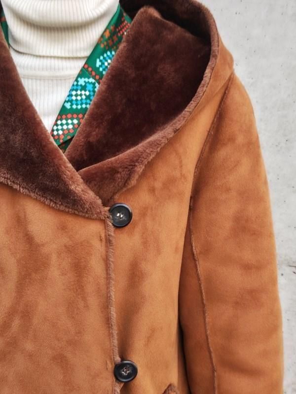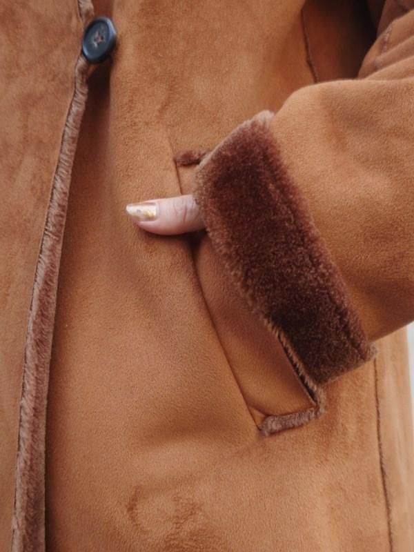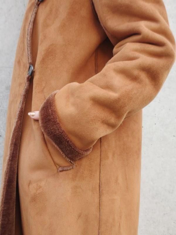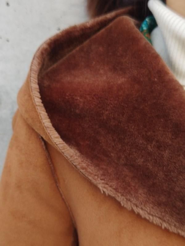 キャメルカラーのフェイクムートンx裏地&袖口の