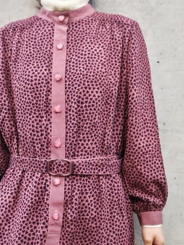 ピンク・パープル・ネイビー三角柄♪レトロワンピ