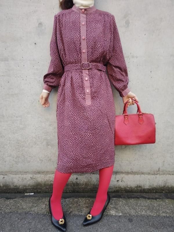 ピンク&パープルの可愛いレトロボタンやベルト付きも